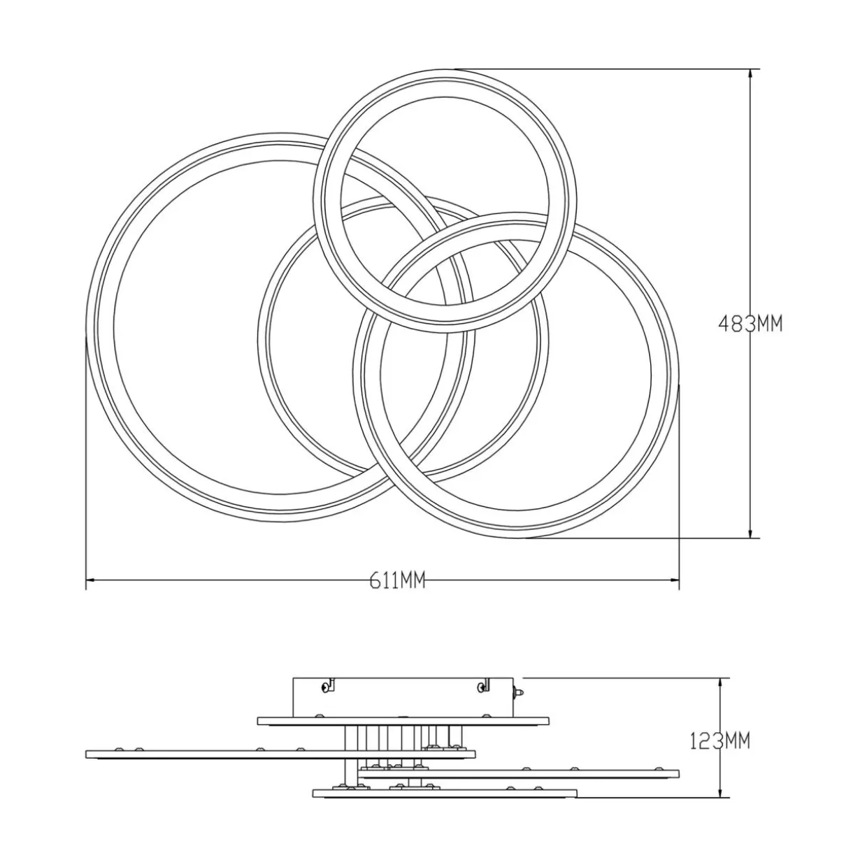 Design lampy tworzą 3 przecinające się nawzajem pierścienie zestawione z okrągłą podsufitką. To modne i funkcjonalne zestawienie będzie idealne dla Twojego salonu w nowoczesnym stylu.
