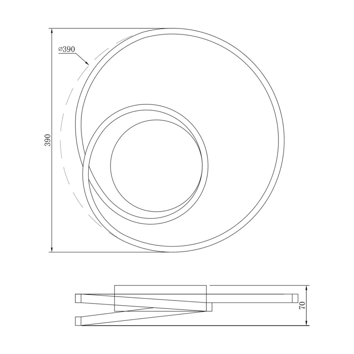 Design lampy przypomina wirującą wstęgę, w której ozdobne elementy wmontowane zostało oświetlenie LED.