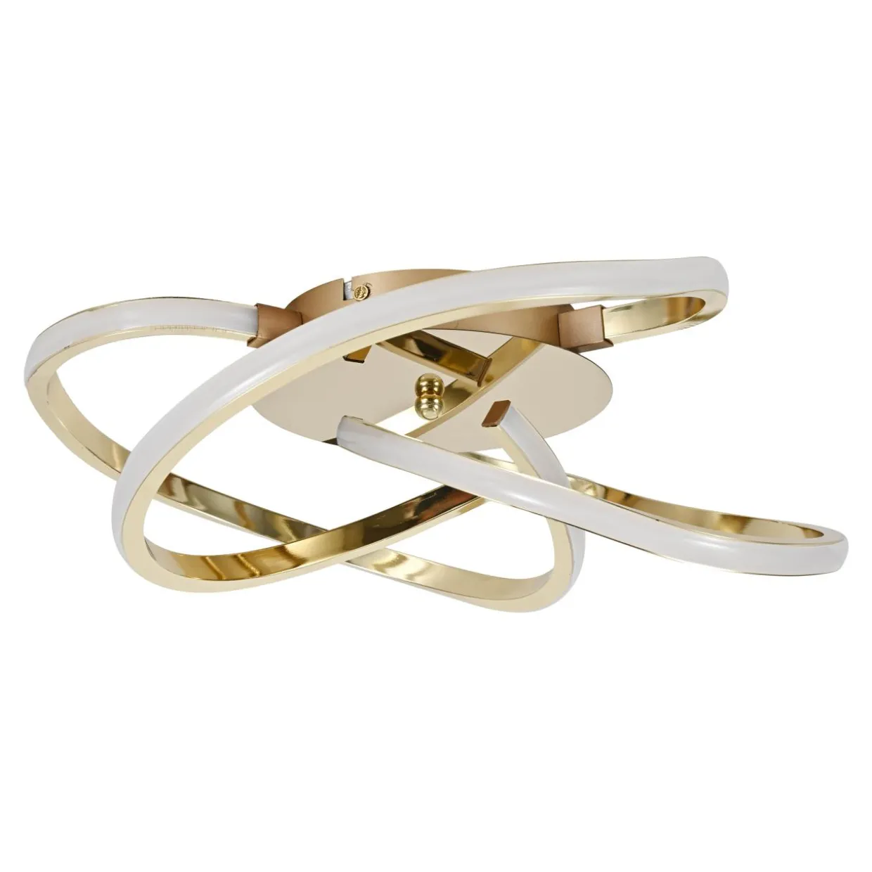 Złoty kolor elementów dekoracyjnych i podsufitki jest wykończony w połysku, a jedynym jego przełamaniem jest wbudowane w lampę oświetlenie LED.