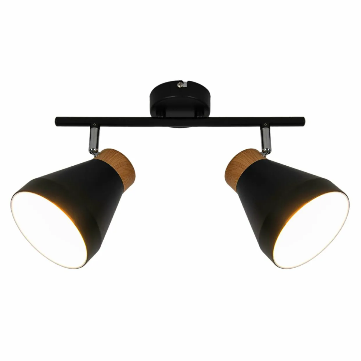 Wizualnie łączy surowy nowoczesny styl z naturalnością. Czarny kolor jest dopełniony elementami w odcieniu jasnego drewna w górnej części kloszy. Komponuje się z meblami i dekoracjami w podobnej tonacji, zatem możesz lampę wykorzystać jako dopełnienie wnętrz w stylu nowoczesnym oraz loftowym.