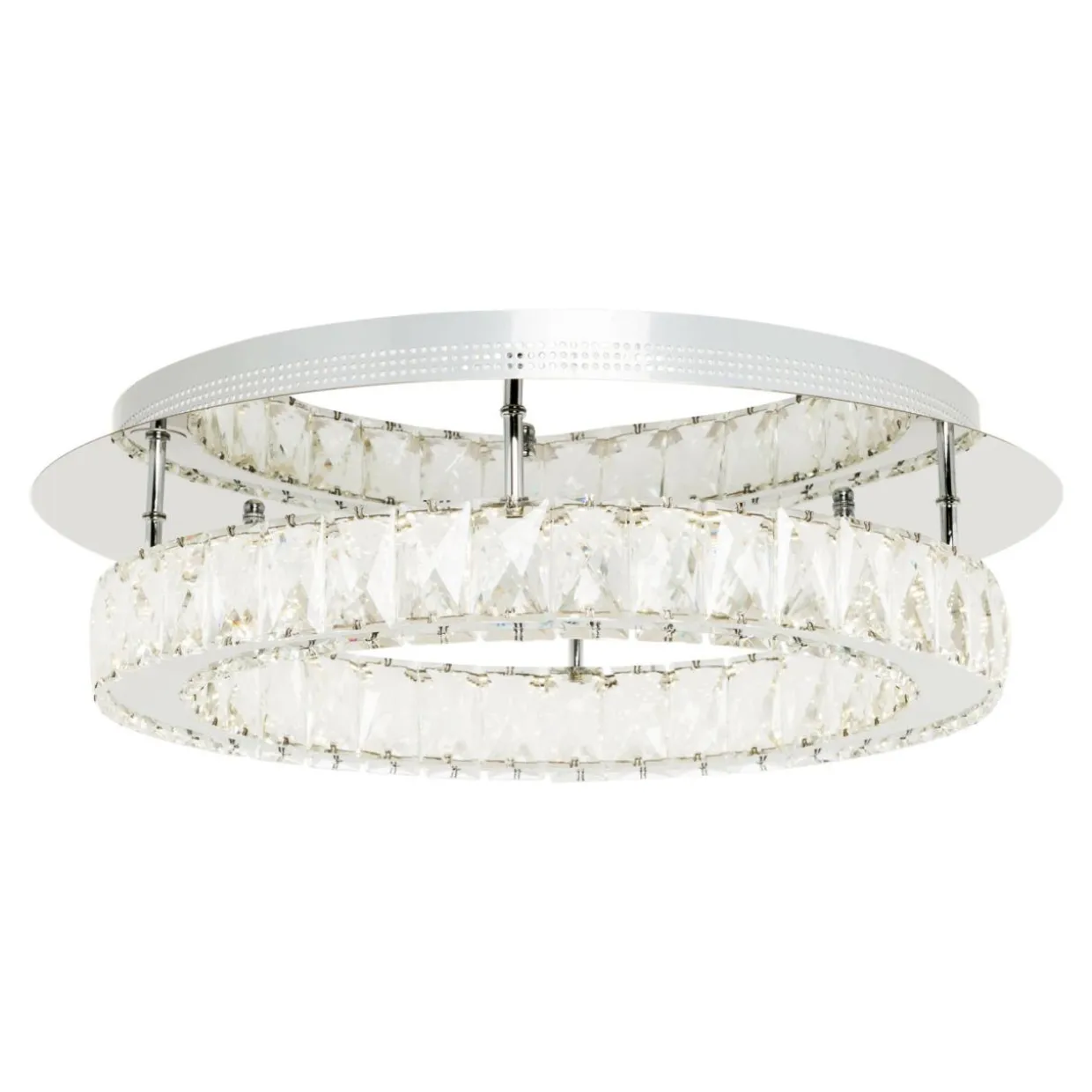 Srebrna kolorystyka podstawy oraz elementów ozdobnych lampy wzbogacona chromowanym wykończeniem urozmaica wizualnie wnętrze pomieszczenia, czyniąc jest jaśniejszym i większym.