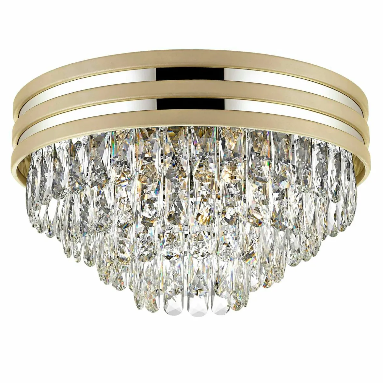 Podstawa lampy to osobliwe połączenie złotego wybarwienia z naturalnym kolorem stali. Całości dopełnia matowe wykończenie, które świetnie sprawdza się w bardziej stonowanych aranżacjach.