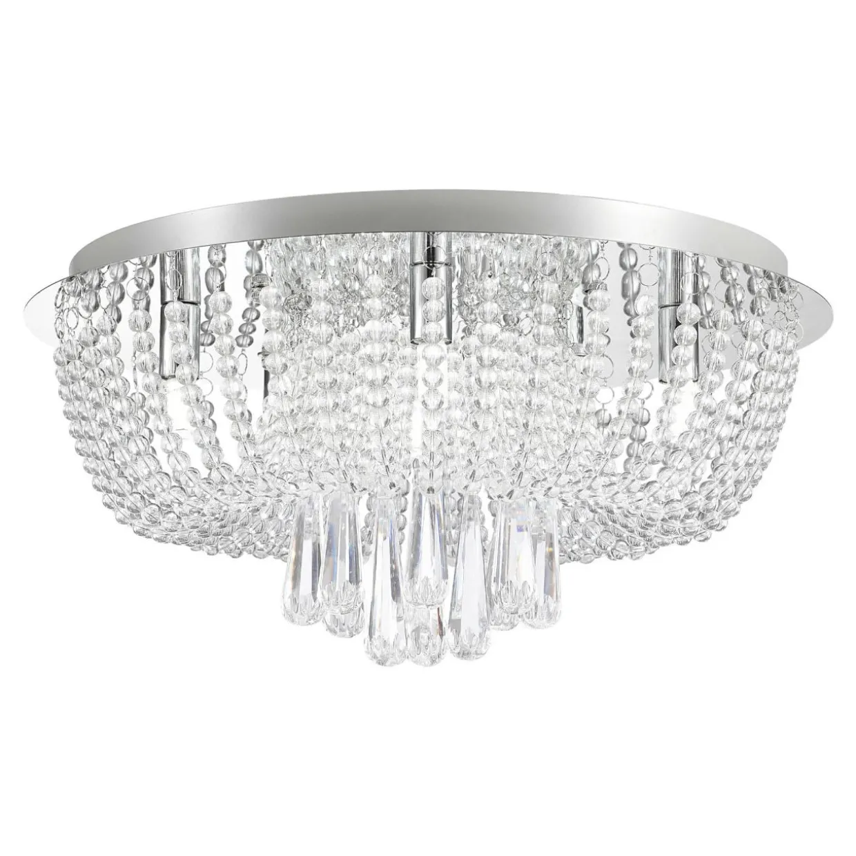 Lampa sufitowa SENSI posiada oprawę przeznaczoną dla sześciu żarówek typu G9 o mocy maksymalnej 25W, które rozmieszczone wewnątrz części dekoracyjnej tworzą refleksy ścianach i suficie. Podstawa lampy jest metalowa, wykończona chromem.