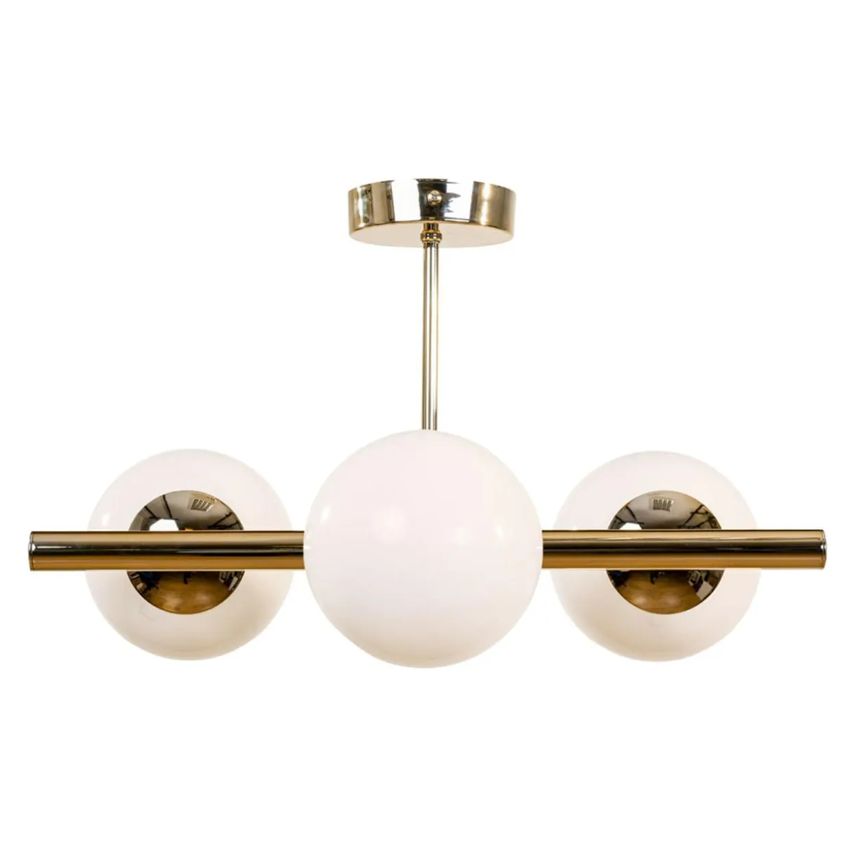 - 3 źródła światła umieszczone są obok siebie i przesłonięte kulistymi kloszami