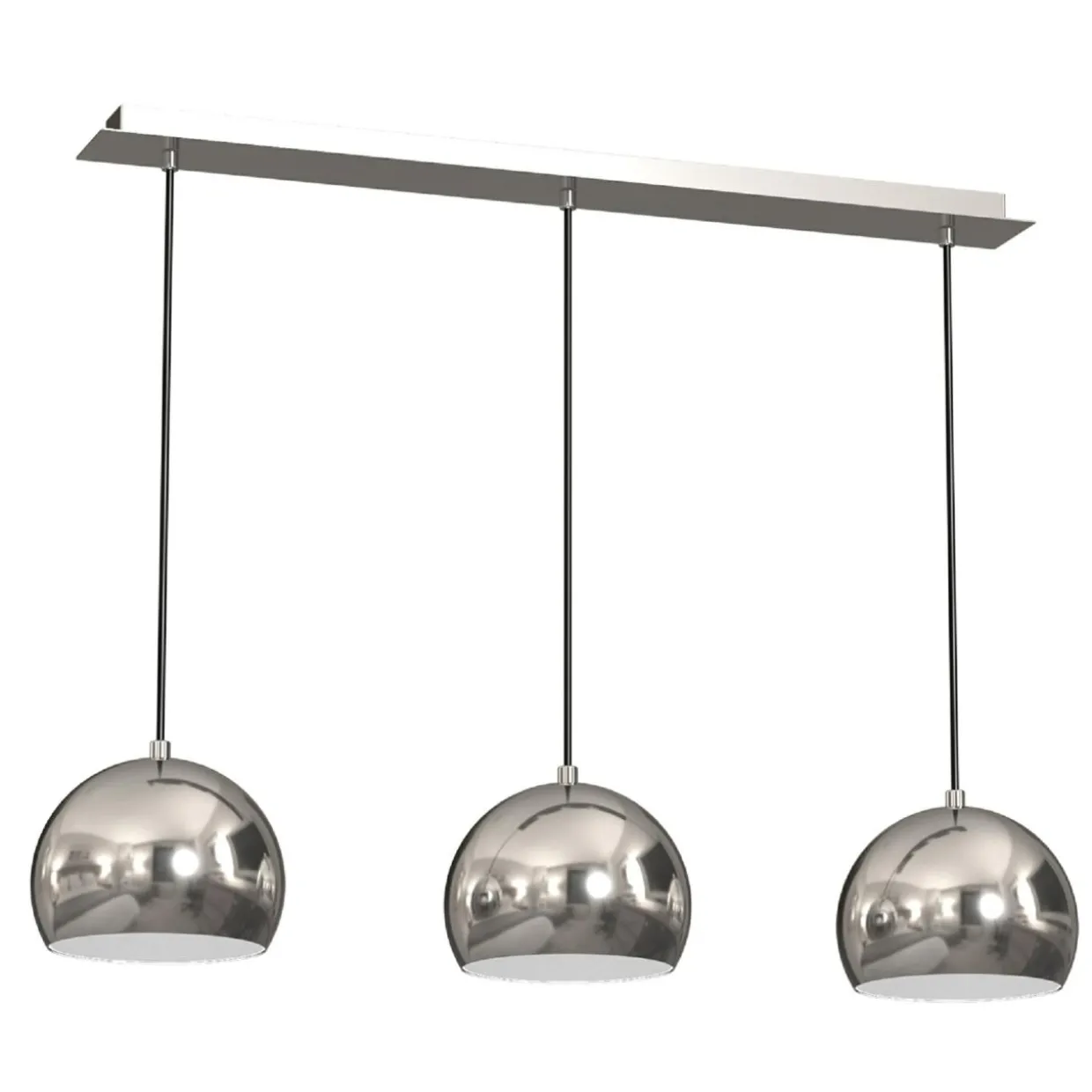 Trzy lampy umieszczone równolegle do siebie, zawieszone na montowanej pod sufitem listwie tworzą kompozycję, która doskonale prezentuje się w minimalistycznie urządzonych wnętrzach. Niewielkie wymiary dodatkowo podkreślają jej uniwersalność.