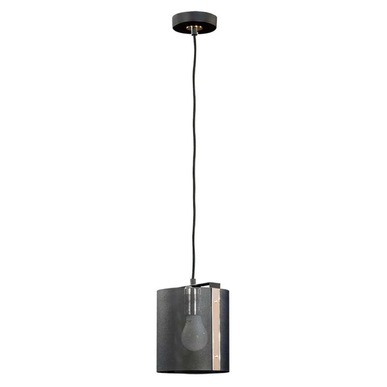 Na uwagę zasługuje ozdobny klosz w czarnym kolorze, wykonany z cienkiej metalowej siateczki, który w oryginalny sposób rozprasza światło. Podstawa lampy również wykonana została z metalu.