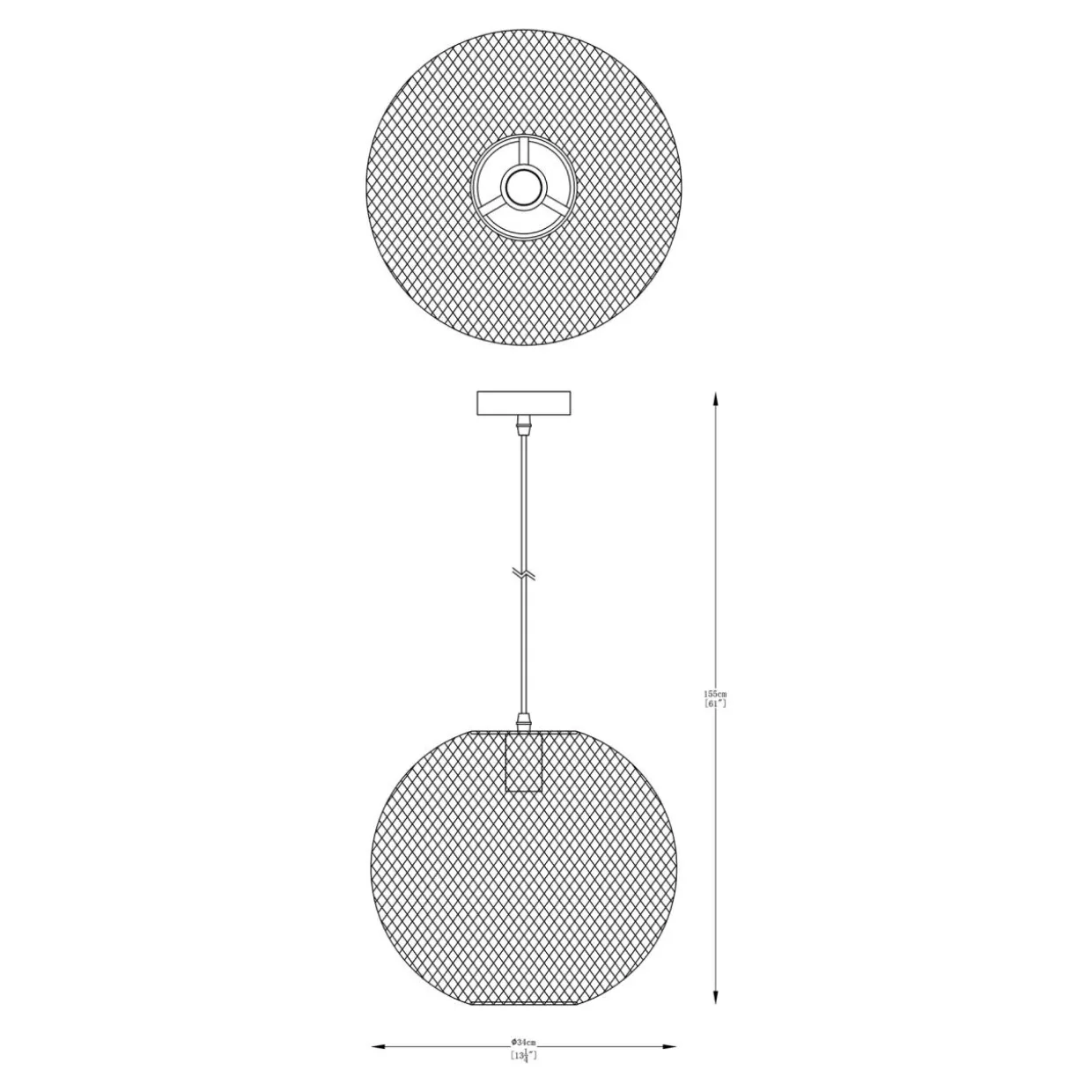 Wykonany został z cienkich metalowych elementów. Splecione razem tworzą półprzeźroczystą konstrukcję. Przypomina ona sieć, która układa się w kulisty kształt. W środku znajduje się miejsce dla pojedynczej żarówki.