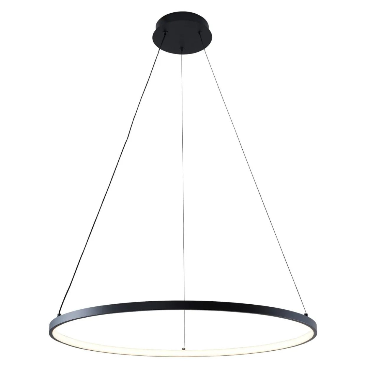 Pasek biegnie wewnątrz metalowego okręgu, rozjaśniając od środka przestrzeń. Lampa emituje strumień świetlny o wartości 1500 lumenów.