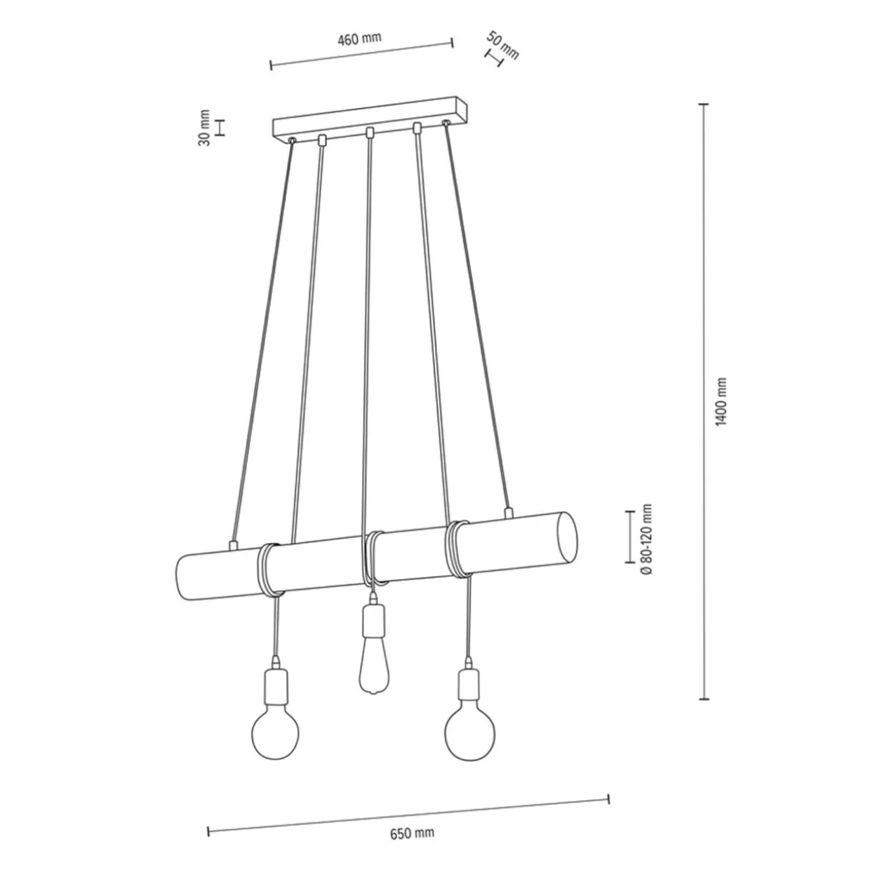 - Lampa wisząca TRABO posiada oprawę dla 3 żarówek typu E27 o mocy maksymalnej 60W.