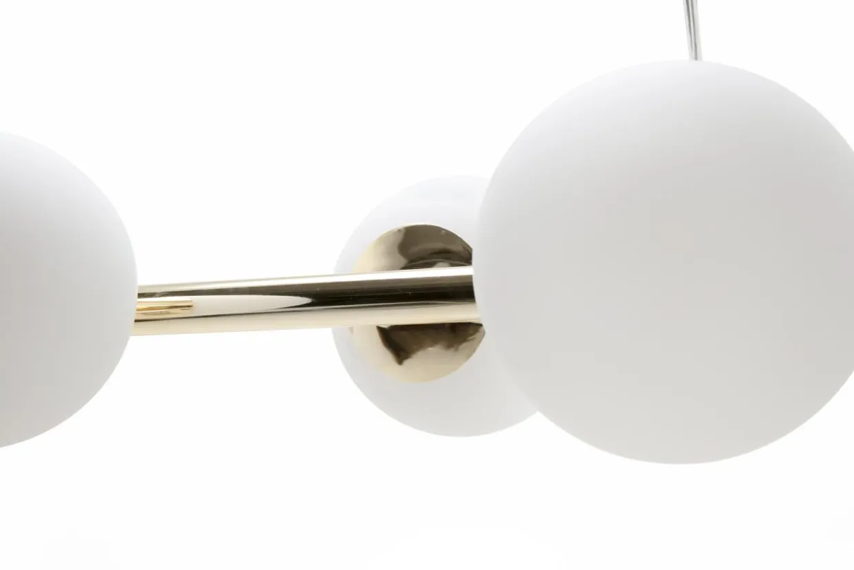 LINEA to świetnie odnajduje się w przestronnych wnętrzach. Można ją zawiesić nad stołem w jadalni lub przyozdobić i doświetlić wnętrze salonu. Wykończenie w kolorze złota sprawia, że lampę można zestawić z bielą ścian i mebli oraz drewnianymi powierzchniami. By uzyskać wrażenie kontrastu można również dodać do aranżacji czarne lub ciemnobrązowe elementy.