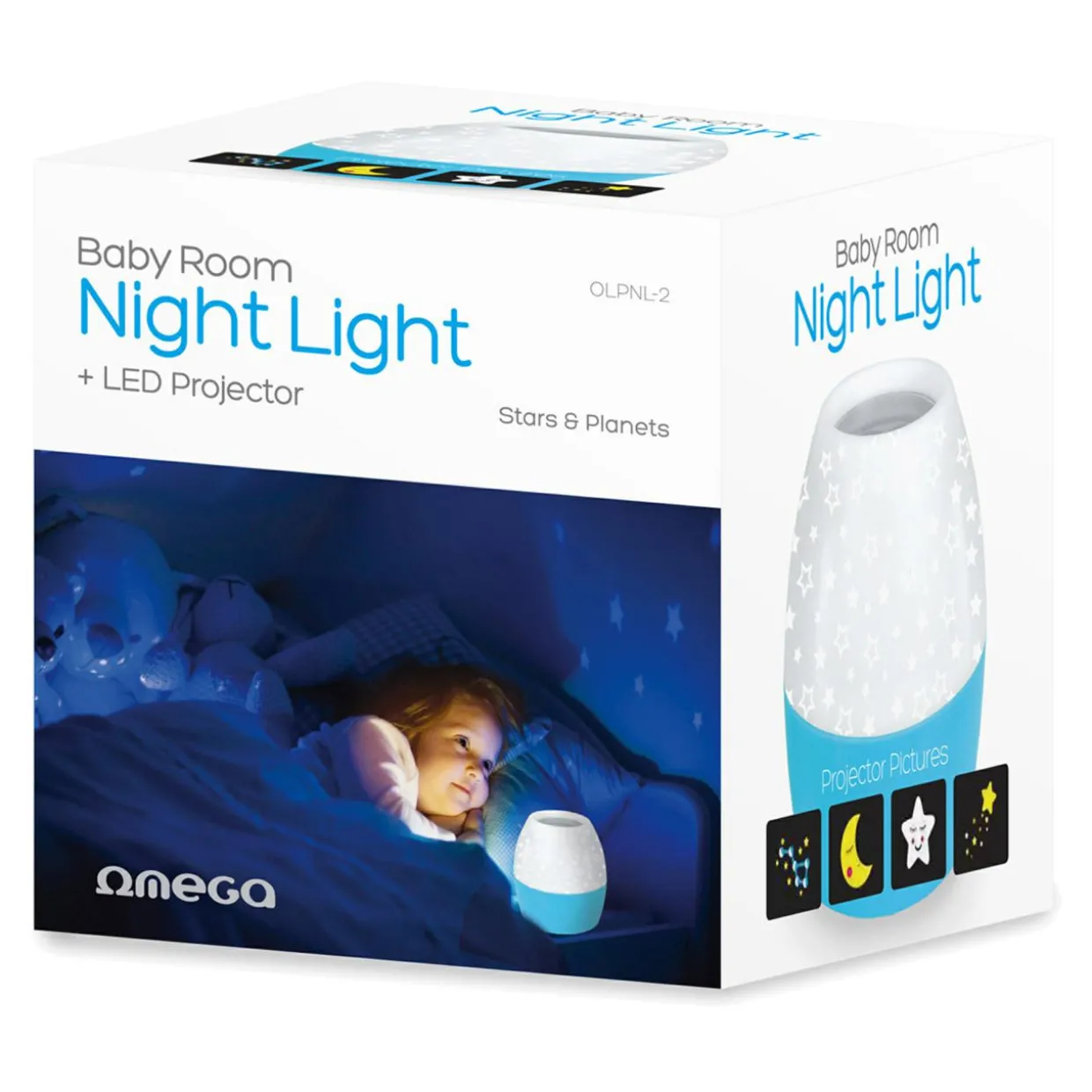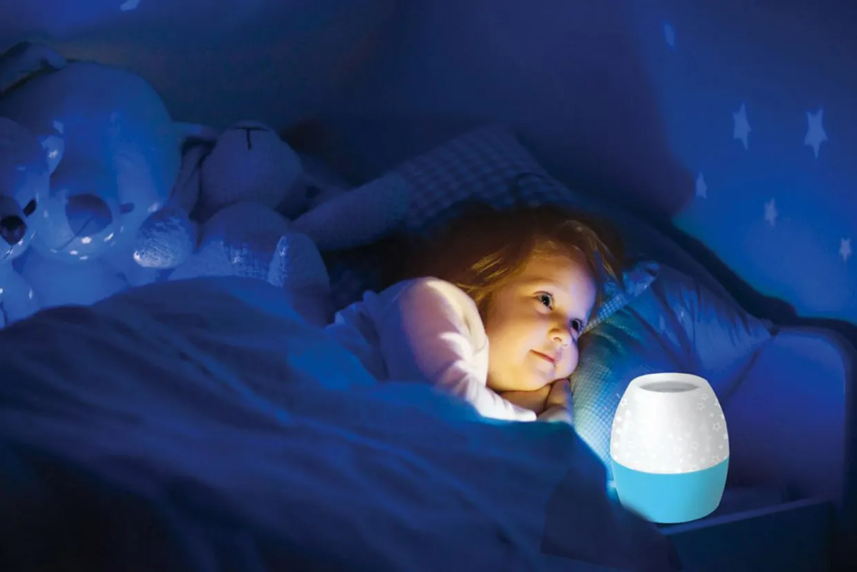 Przyjazne, rysunkowe wersje księżyca i gwiezdnych konstelacji działają kojąco i pomagają zasnąć po całym dniu odkrywania świata.
