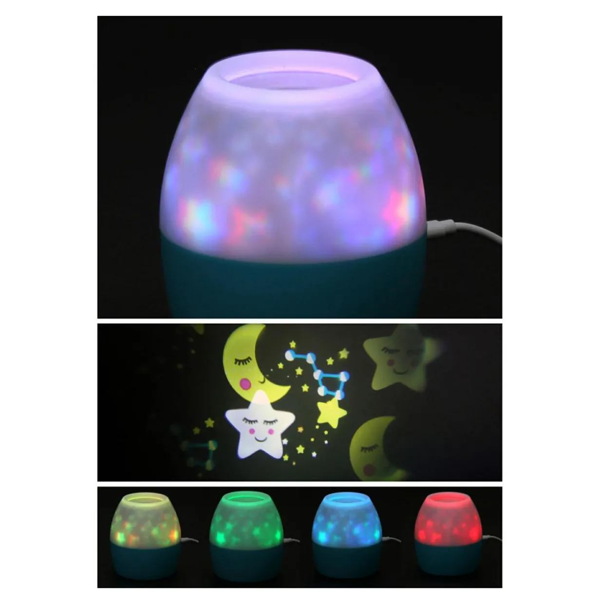 - Lampka nocna świeci w kolorach: czerwonym, zielonym i niebieskim.
