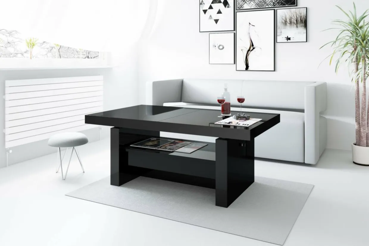 Kiedy postanowisz zorganizować przyjęcie w salonie, bez problemu zwiększysz szerokość ławy do 170 cm i podniesiesz blat do wysokości 65 cm.