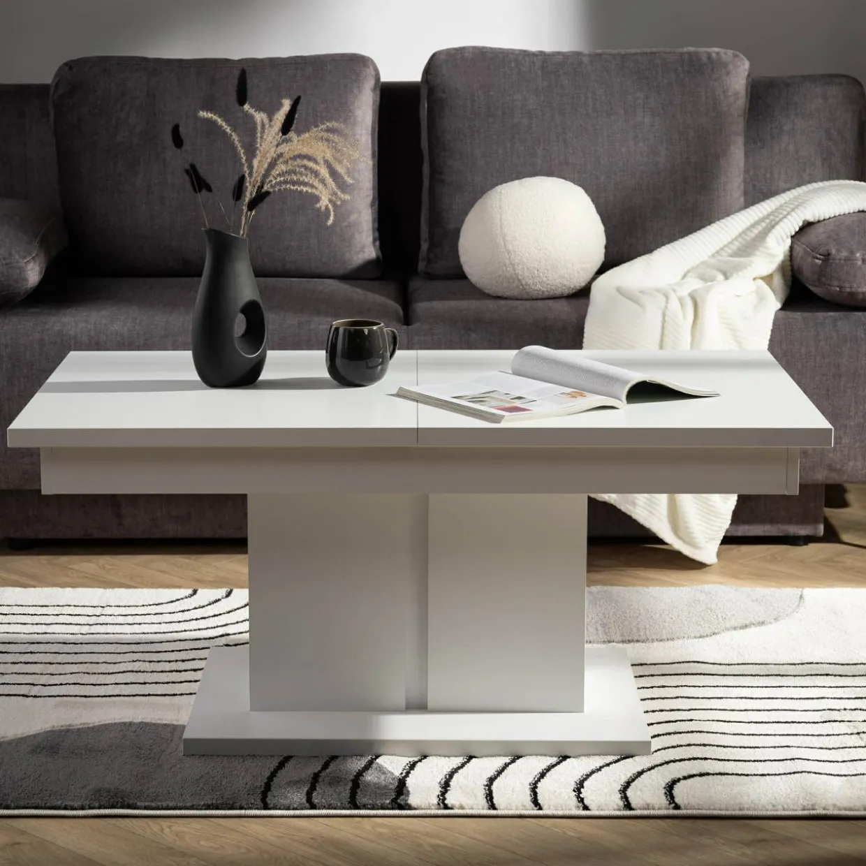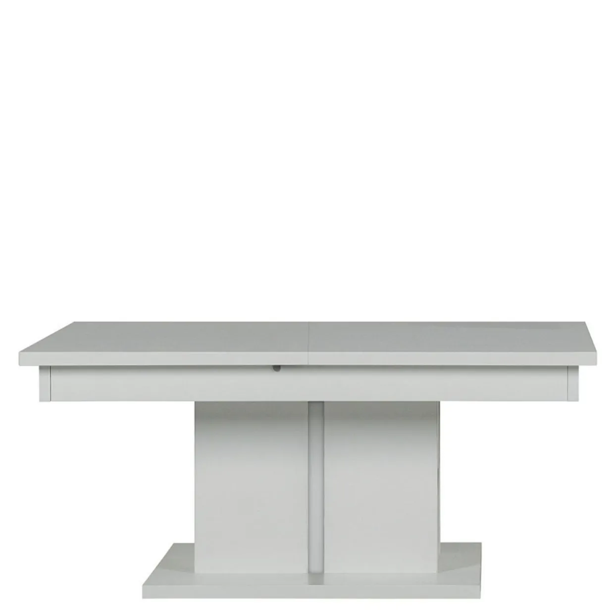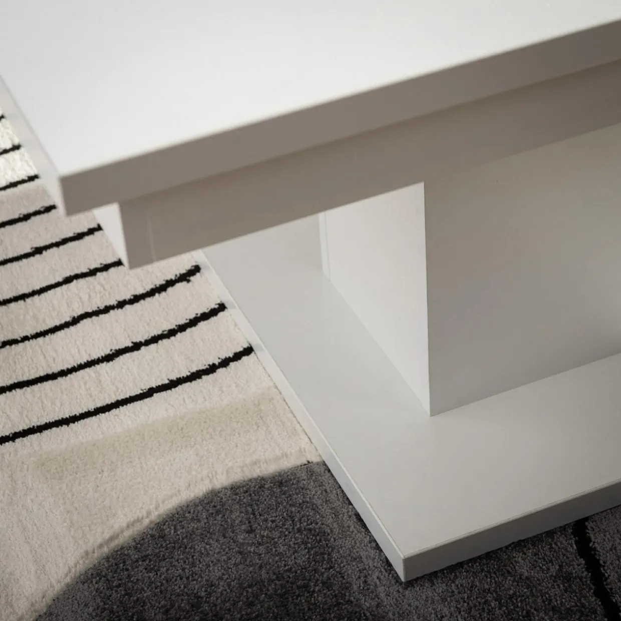 - Ława wykonana jest z płyt meblowych i wykończona laminatem w kolorze białym.