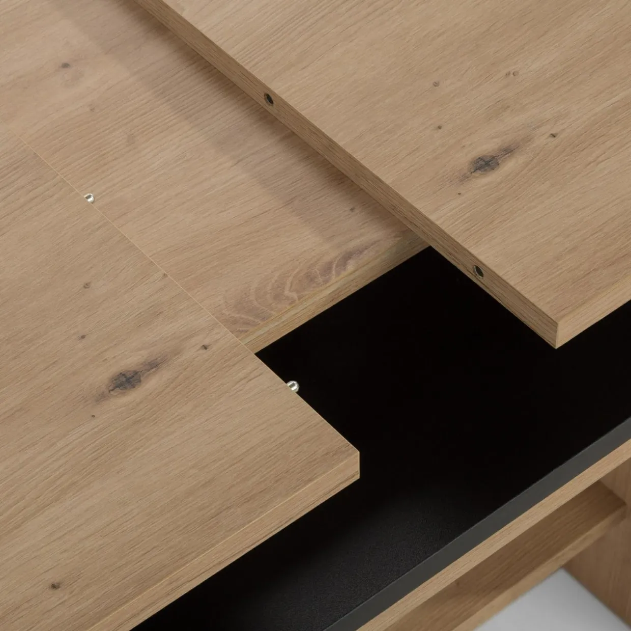 - Zrelaksuj się przy ławie z książką i kubkiem herbaty, a kiedy będziesz chciał ugościć przyjaciół bez problemu rozłożysz ją do rozmiarów stołu – dzięki ukrytej pod blatem wkładce rozmiar blatu zmienia się ze 120 cm do 160 cm.