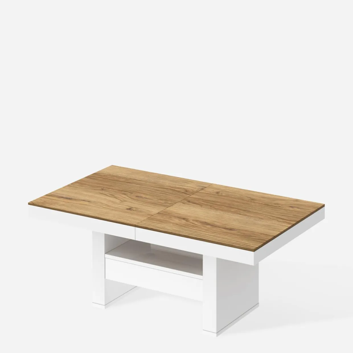 Wykończony laminatem w kolorze dąb pradawny i nogami w białym połysku, dodaje przestrzeni elegancji oraz jasnego kontrastu.