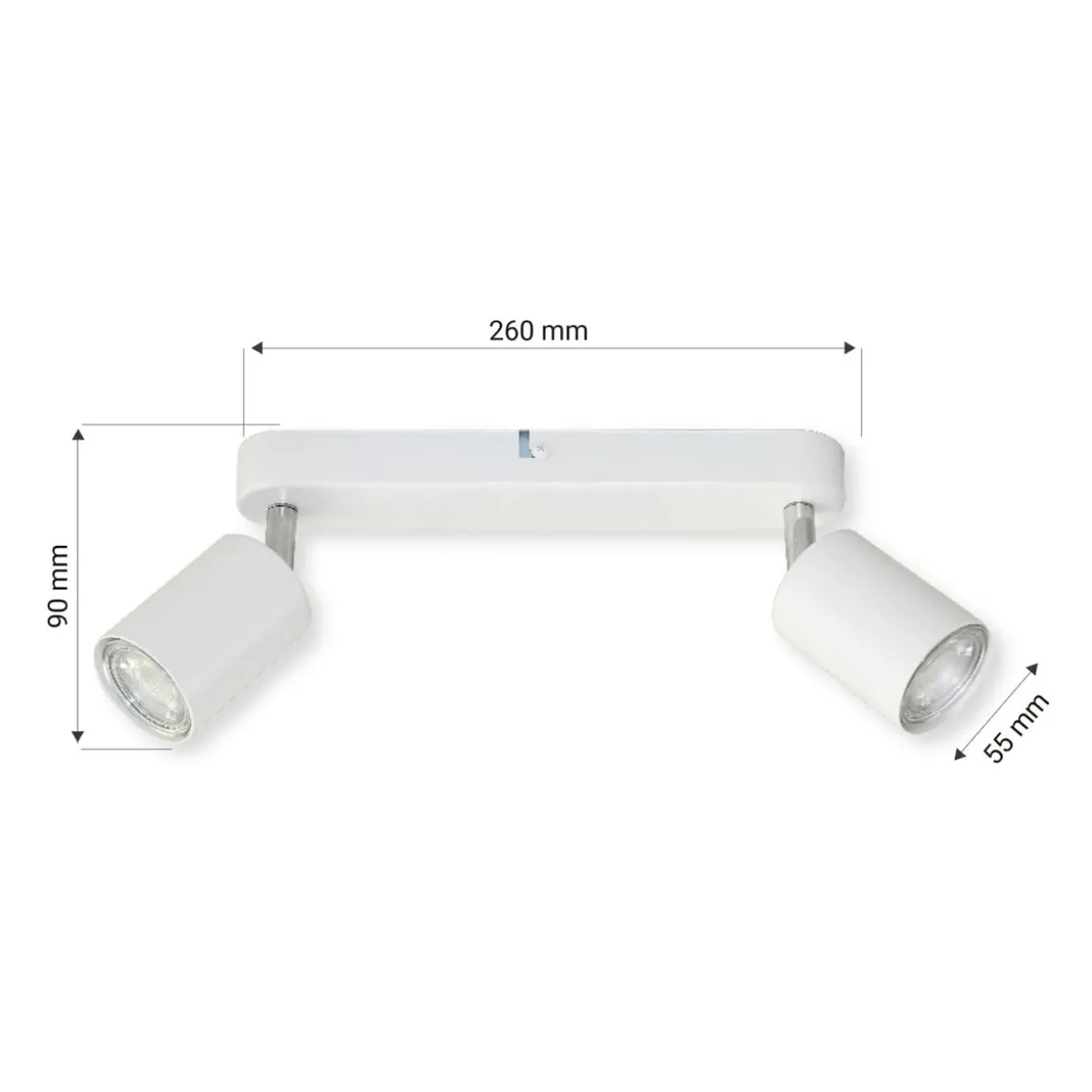 - listwa z 2 reflektorami sprawdza się jako oświetlenie uzupełniające, a regulowane położenie kloszy pozwala na dopasowanie kąta padania światła.