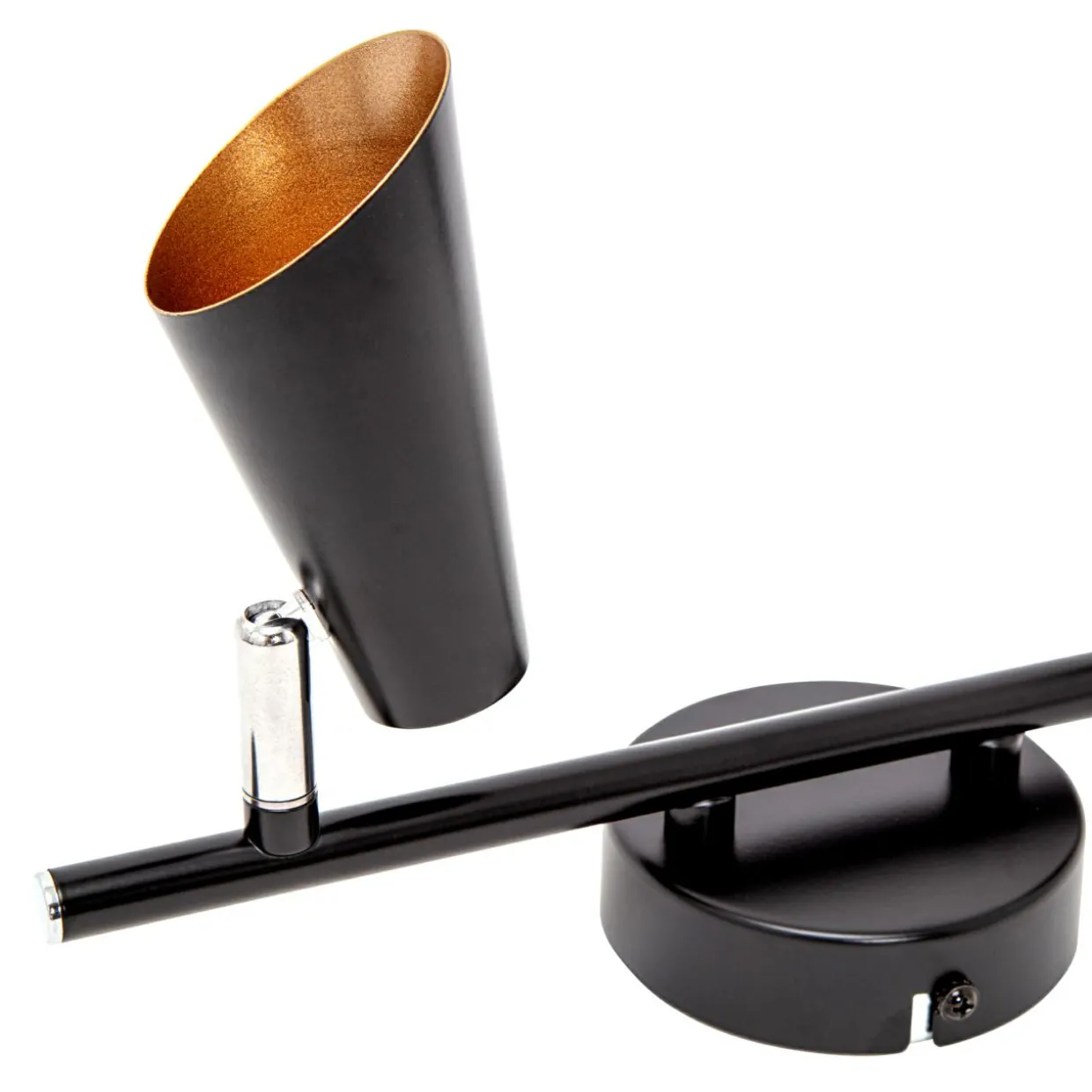Zwróć uwagę na starannie wymodelowany klosze w czarno-złotym kolorze, chromowane wykończenia oraz trwałe, stalowe komponenty.