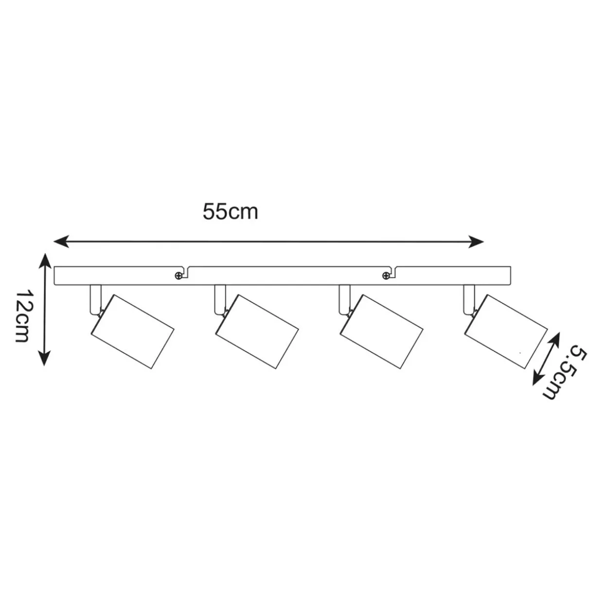 Listwa VILA SPOT posiada oprawę przeznaczoną jest dla 4 żarówek typu GU10 o mocy maksymalnej 50W (w przypadku użycia żarówek halogenowych). Kąt nachylenia klosza można regulować.