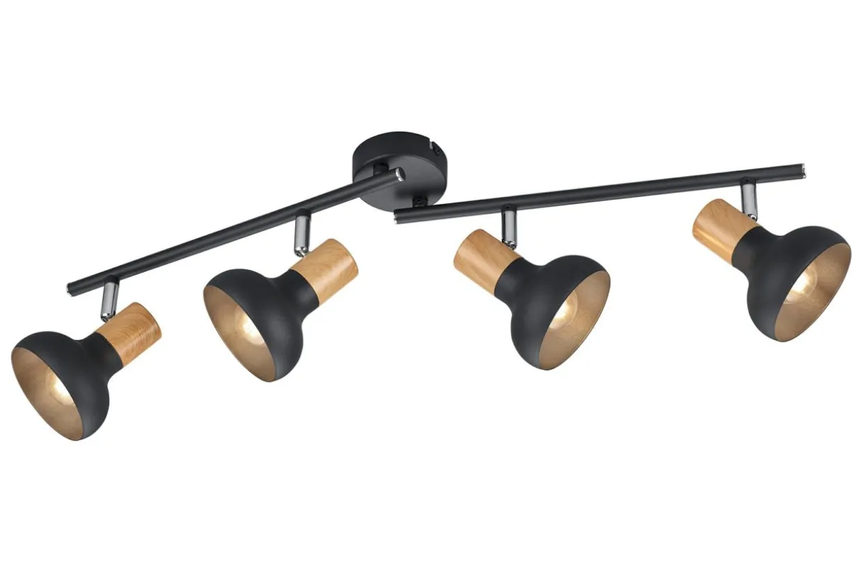 Ozdobna część wykonana w kolorze jasnego drewna doskonale komponuje się z ciepłą kolorystyką mebli oraz dodatków dekoracyjnych, którą dodatkowo podkreślą baza i klosze w czarnym, matowym kolorze.