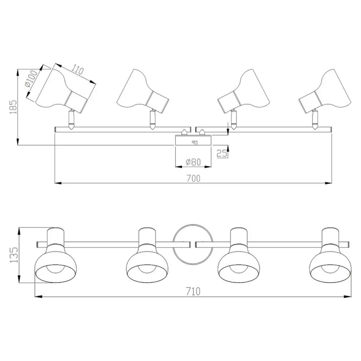 Listwa posiada 2 ruchome ramiona, którymi możesz dodatkowo ustawić położenie kloszy.