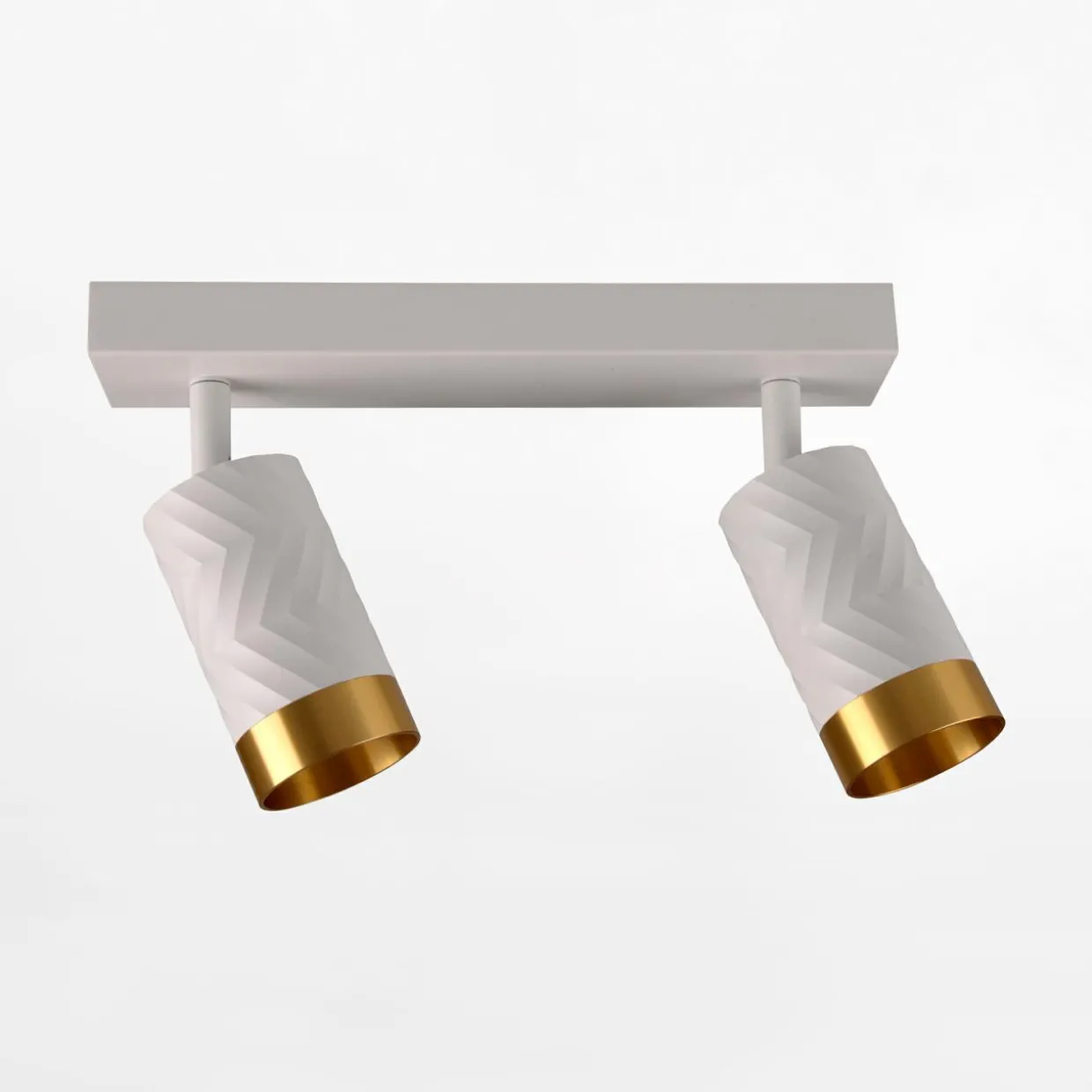 Elegancka listwa sufitowa ARRS biało-złota to nowoczesne oświetlenie z eleganckim żłobionym kloszem i złotym wykończeniem.