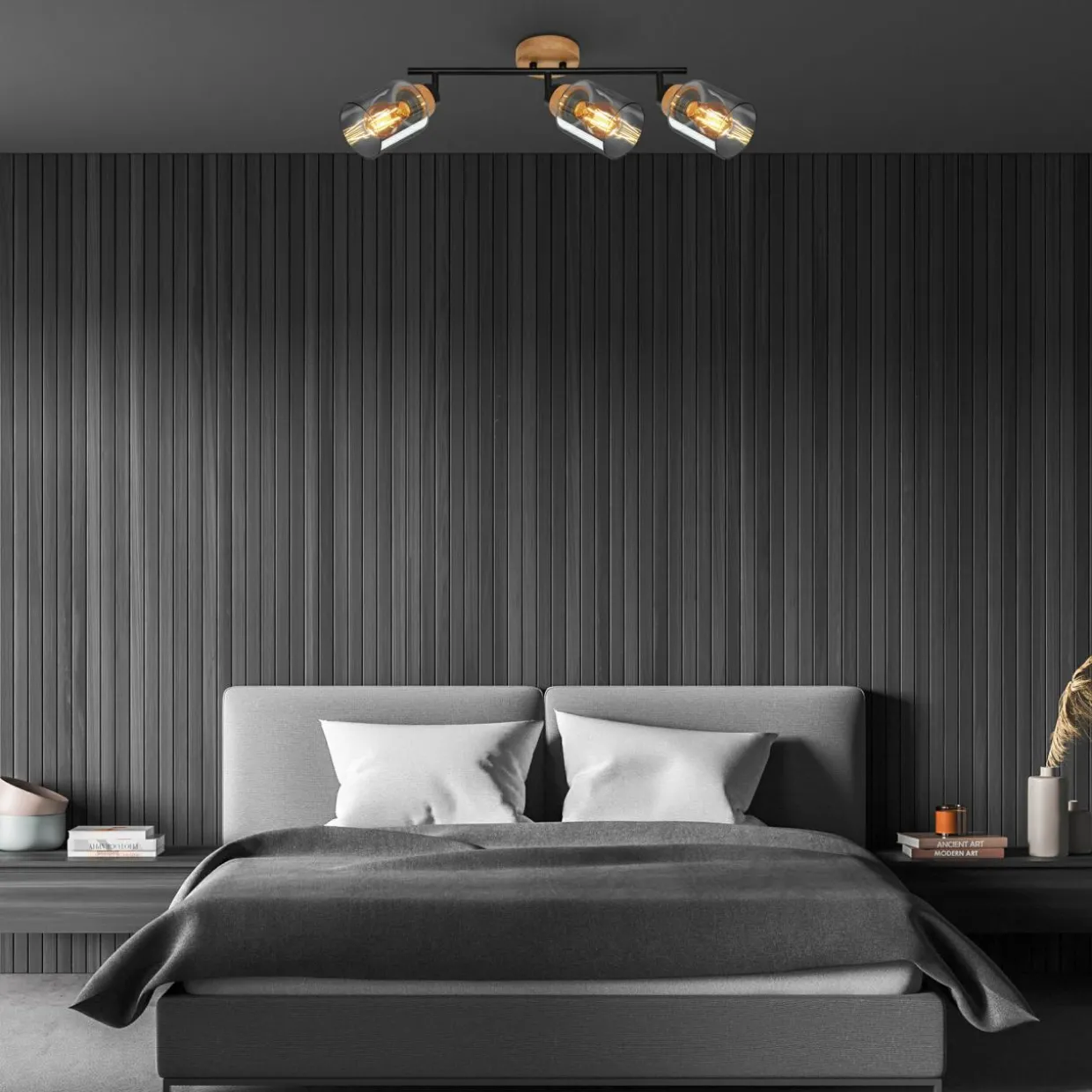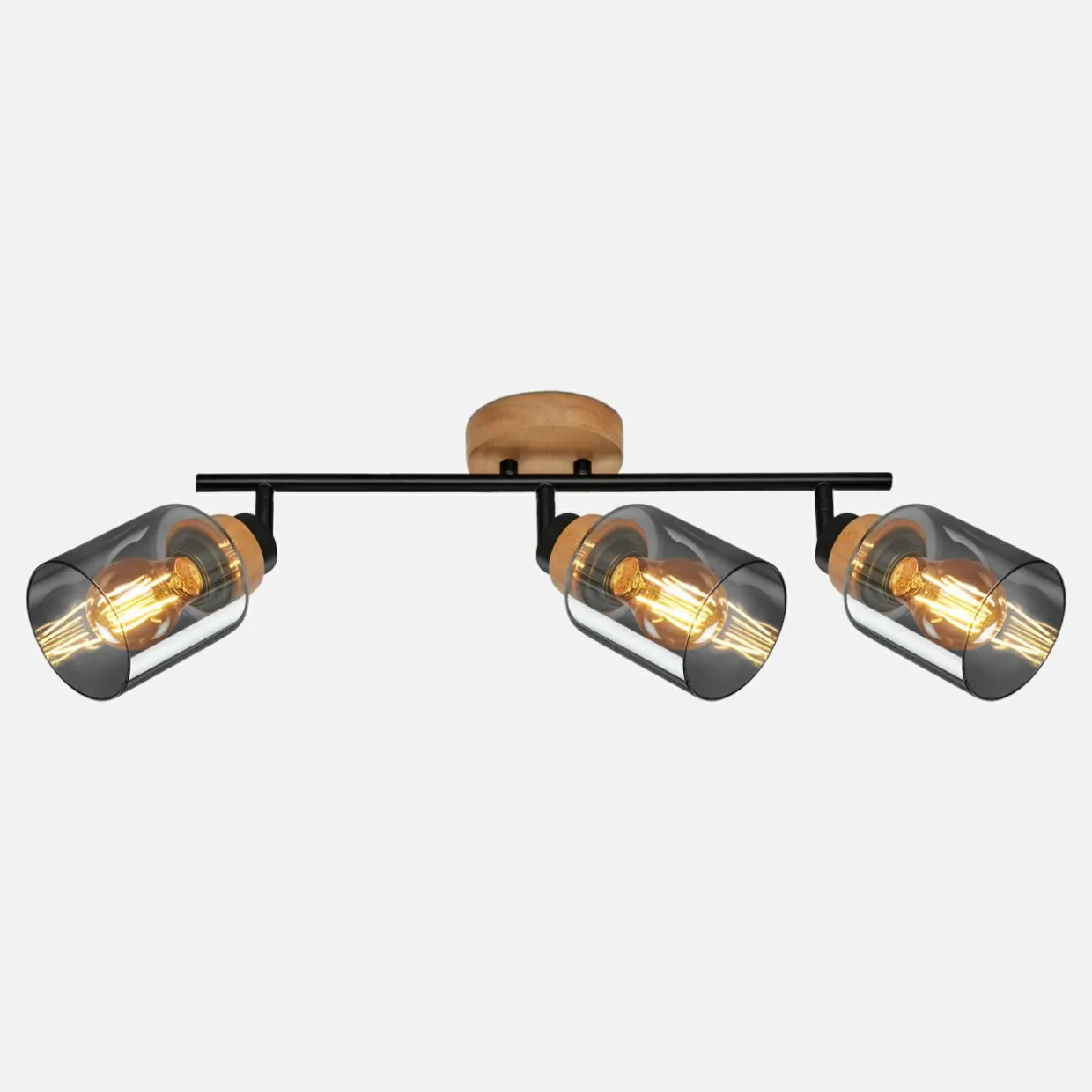 Listwa podwieszana 3 klosze czarna jasne drewno HEMA