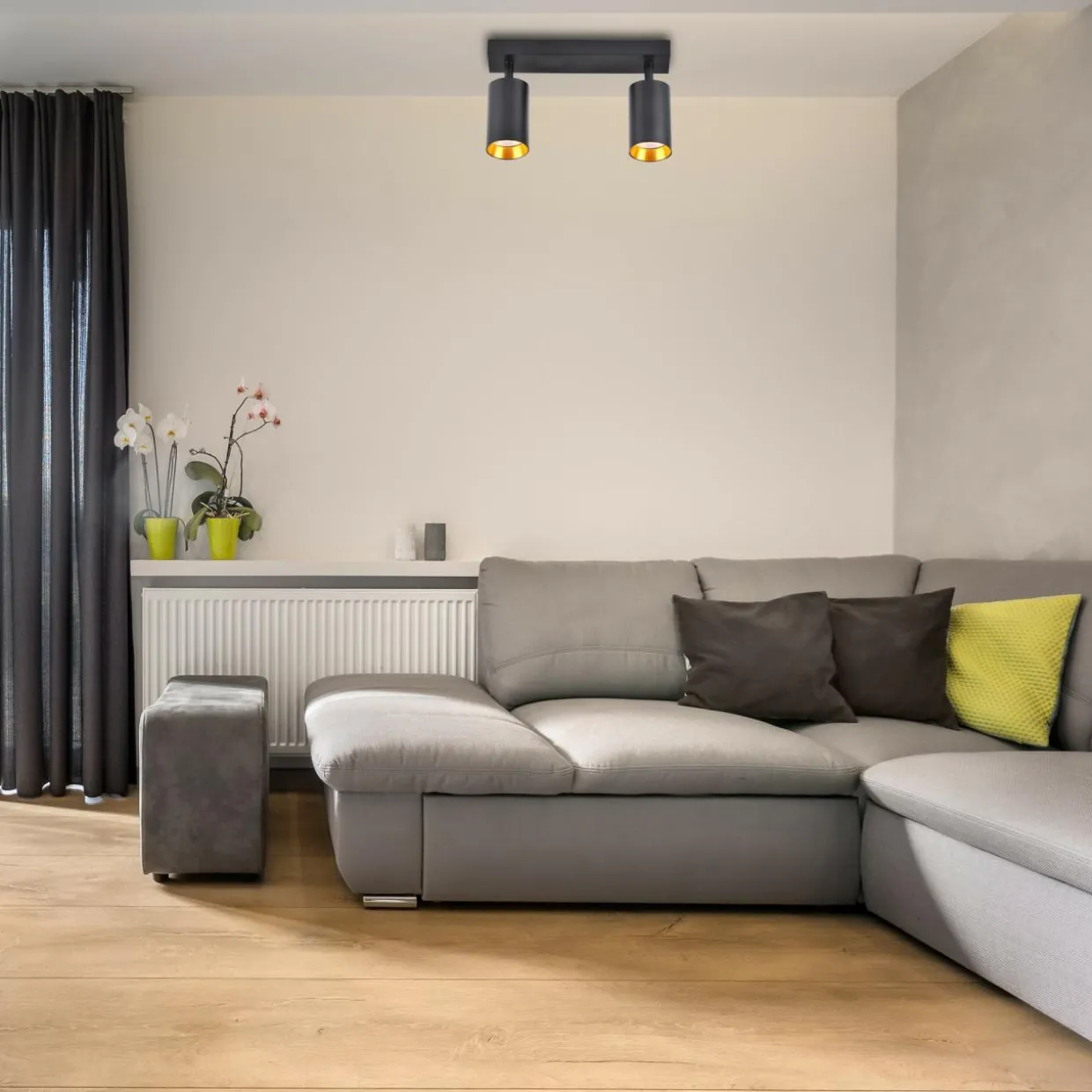 Podstawa i klosz 2-punktowego reflektora MARIBEL zostały wykonane z lekkiego aluminium, możesz go więc zamontować na ścianie lub podwieszanym suficie.
