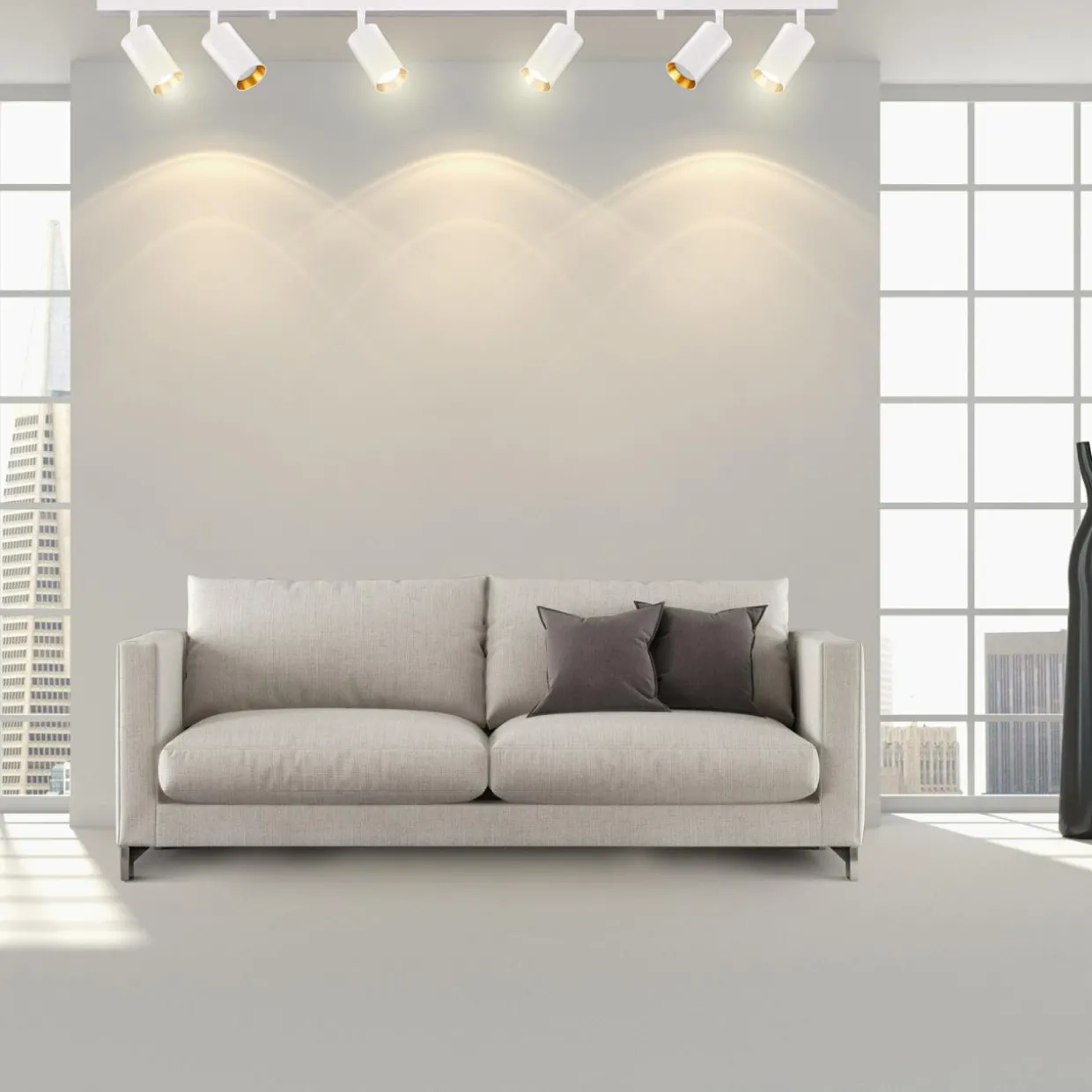 Płynna regulacja 6 głowic lampy pozwala na dużą swobodę przy ustawieniu kierunku światła.