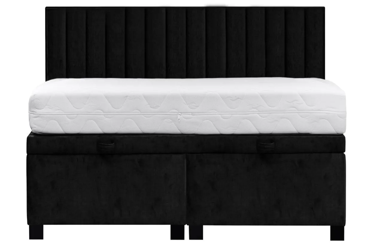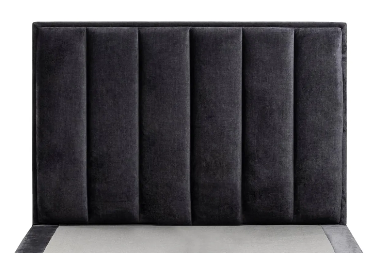 Pionowe przeszycia i aksamitna tkanina w czarnym odcieniu będzie podkreślać elegancję Twojej sypialni i pięknie dopełni aranżację w stylu industrialnym lub glamour.