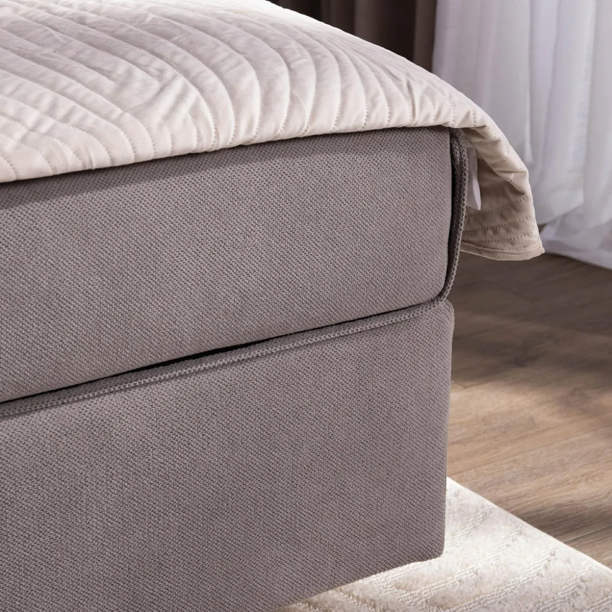 - Boki materaca pokryto tą samą tkaniną co wezgłowie, dzięki czemu całość po założeniu pościeli będzie prezentować się estetycznie.