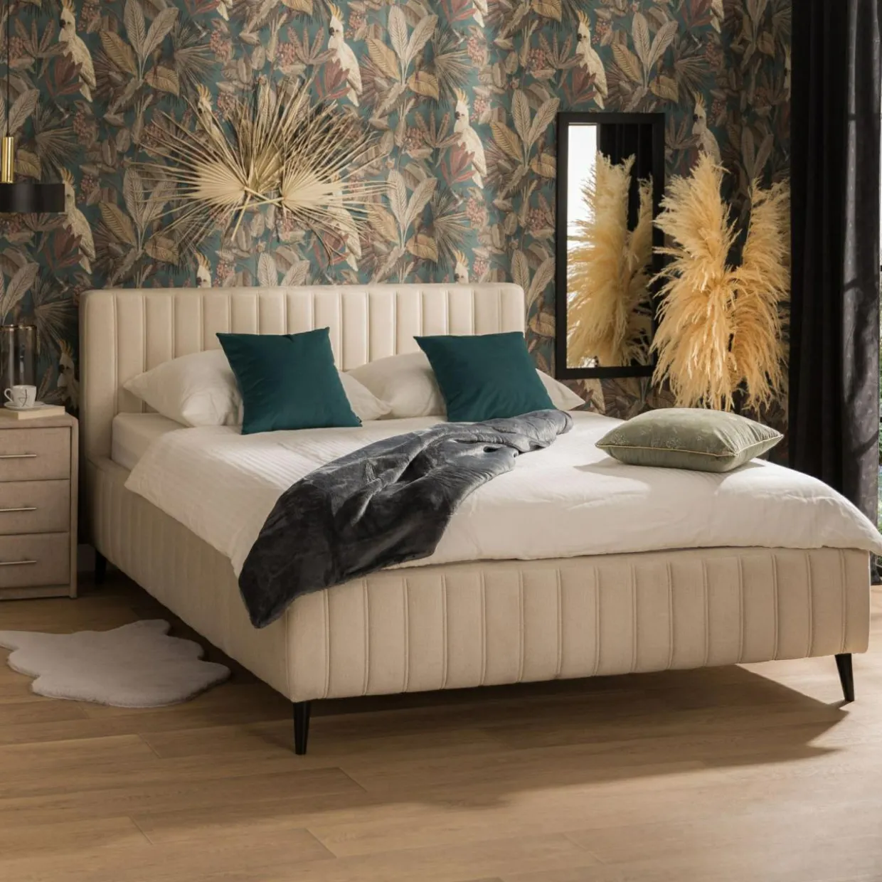 - Łóżko MAGGIE FULL ma jasny, kremowy kolor, który dopasujesz do białych, brązowych czy szarych dodatków.
