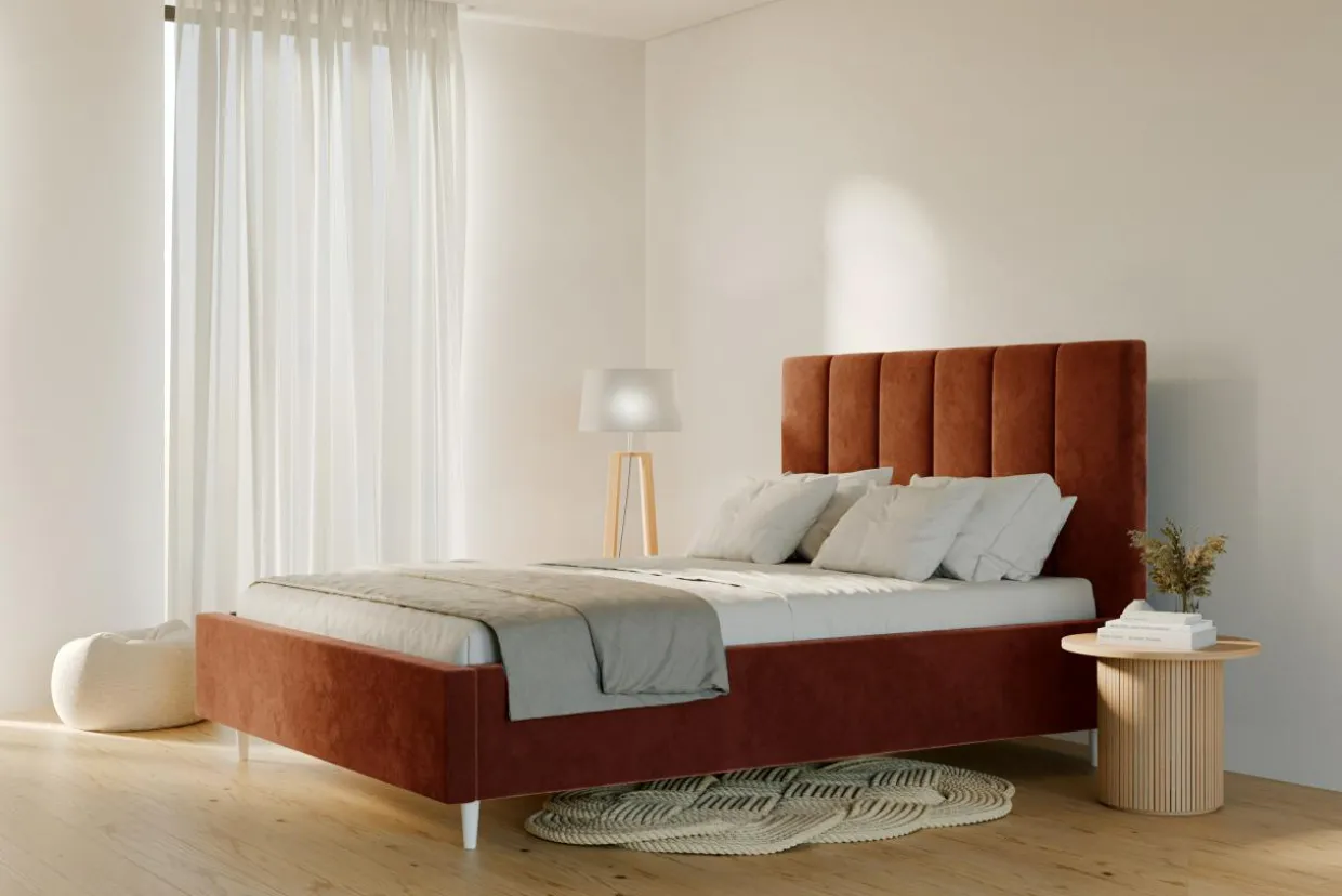 Weź głęboki oddech i odpocznij w łóżku SOFIA. Pomarańczowy kolor doda ciepła do wnętrza i stworzy przytulną atmosferę, która pomoże Ci zasnąć.
