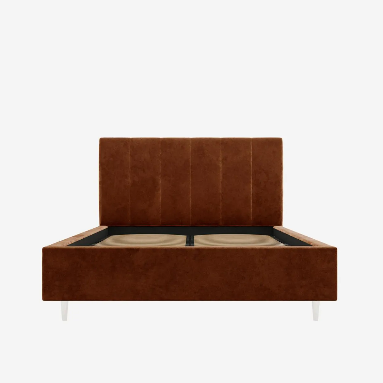 - Łóżko jest wyposażone w tapicerowaną ramę oraz stelaż, które stworzą komfortową powierzchnię spania dla 2 osób.