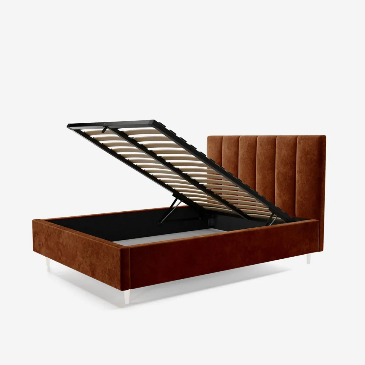 - Pojemnik pod stelażem da Ci przestrzeń, w której przechowasz pościel i inne domowe tekstylia. Dostęp do niego ułatwi Ci podnośnik gazowy.