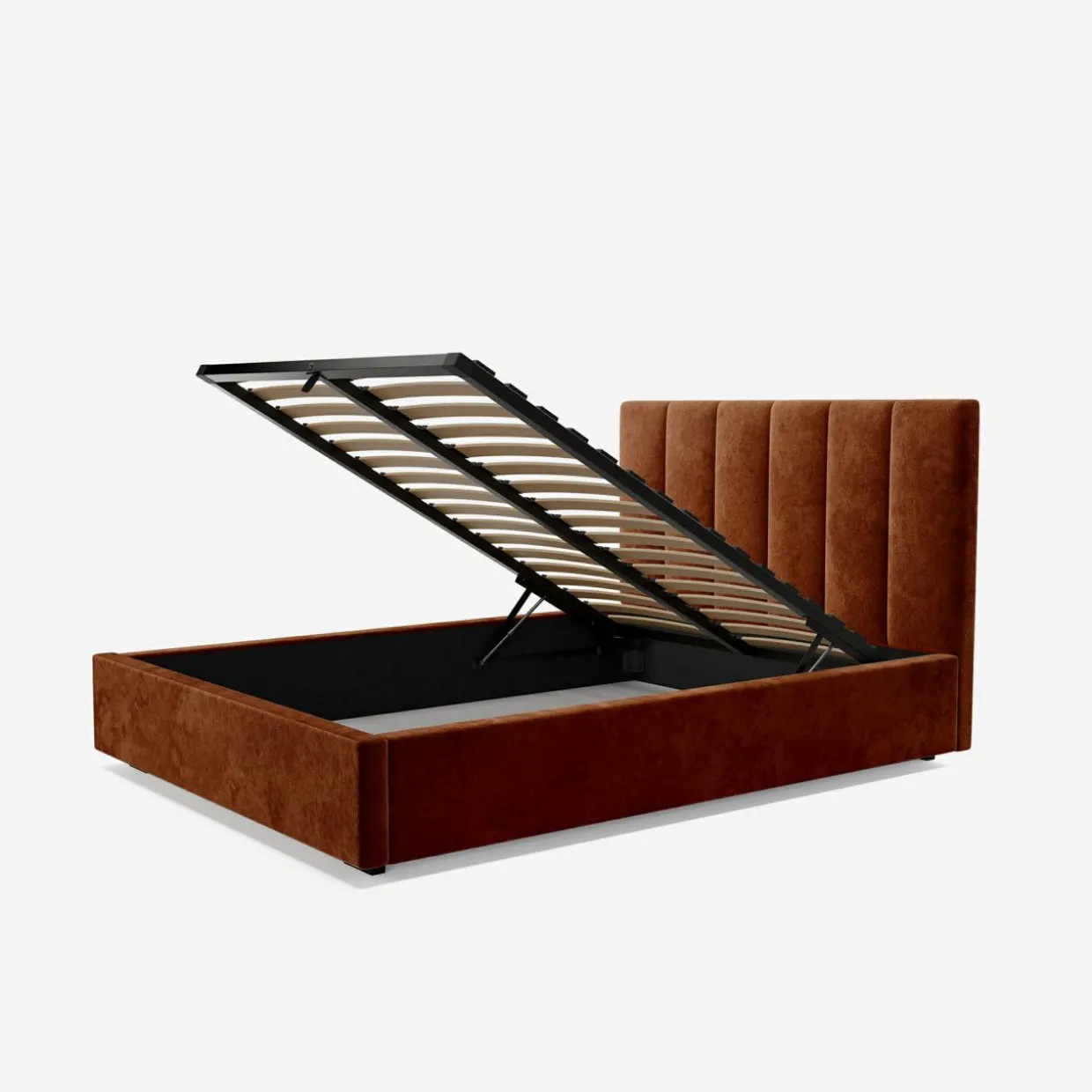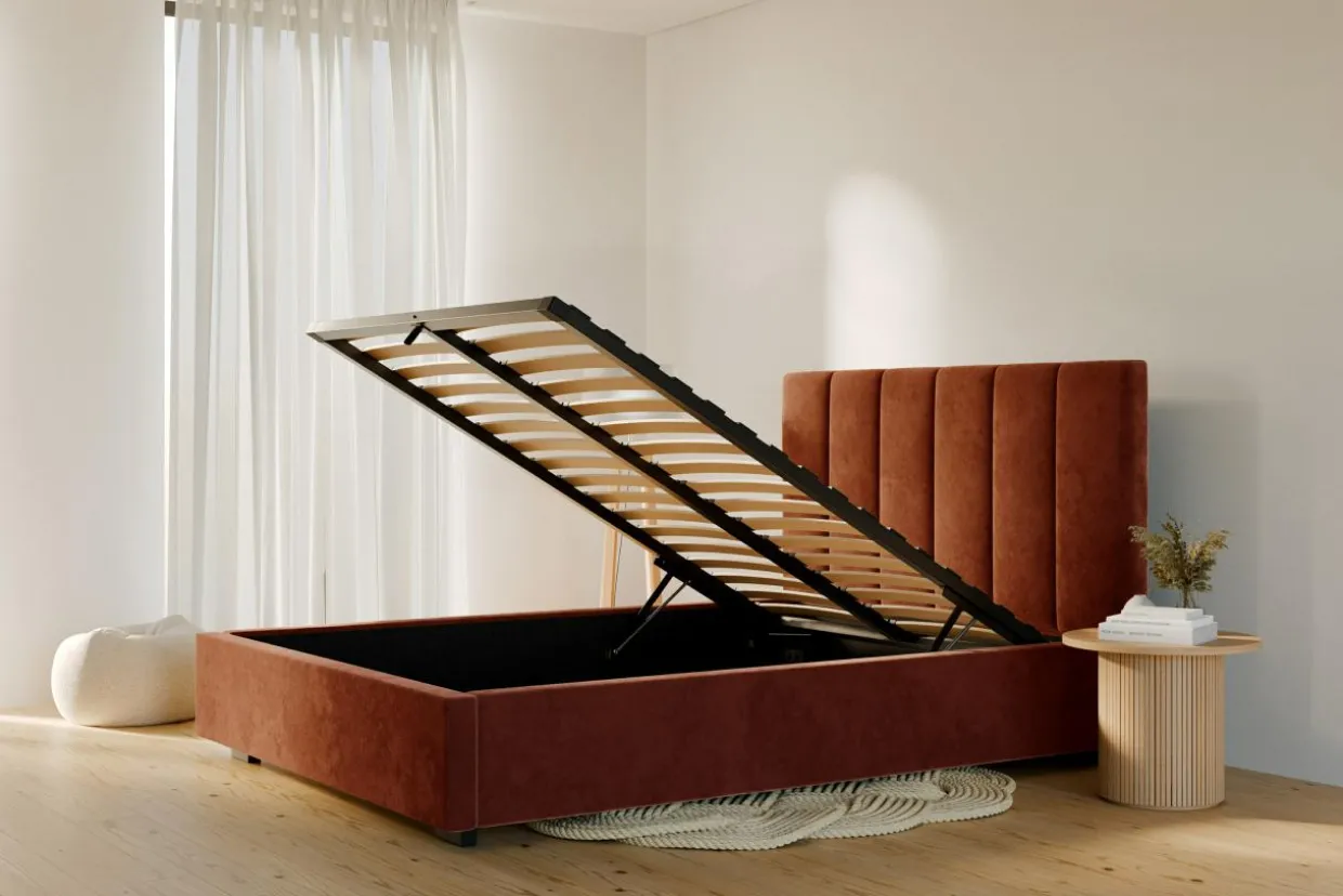 - Pojemnik pod stelażem da Ci przestrzeń, w której przechowasz pościel i inne domowe tekstylia. Dostęp do niego ułatwi Ci podnośnik gazowy.