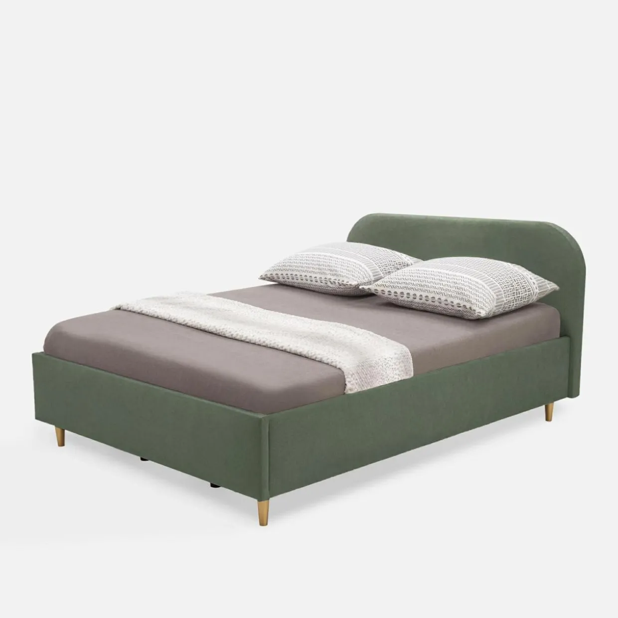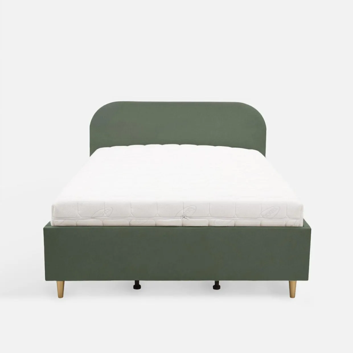 Marzysz o sypialni w stonowanych barwach? Łóżko SANTADI urzeknie Cię oliwkowym welurem i złotymi nóżkami, które stworzą aranżację pełną harmonii.