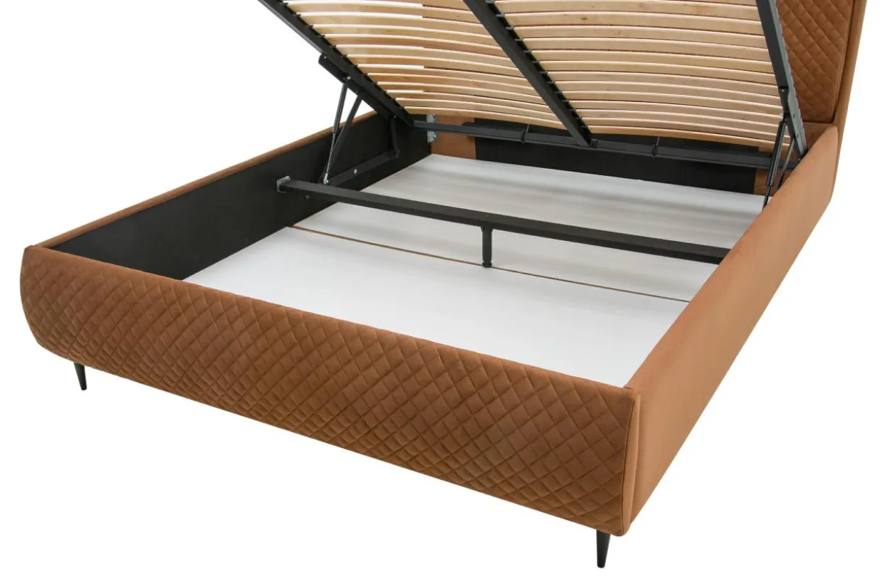 - Stelaż podnoszony o wymiarach 140×198 cm posiada metalową ramę i żebra wykonane ze sklejki.