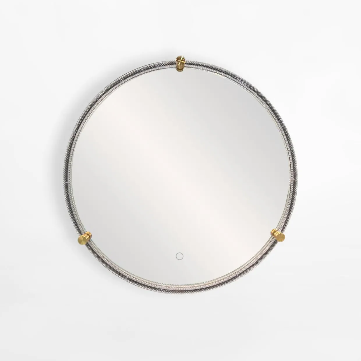 - Oświetlenie LED ukryte w akrylowej ramie otacza okrągłą taflę lustra. Dzięki temu jego powierzchnia jest zawsze dobrze doświetlona.