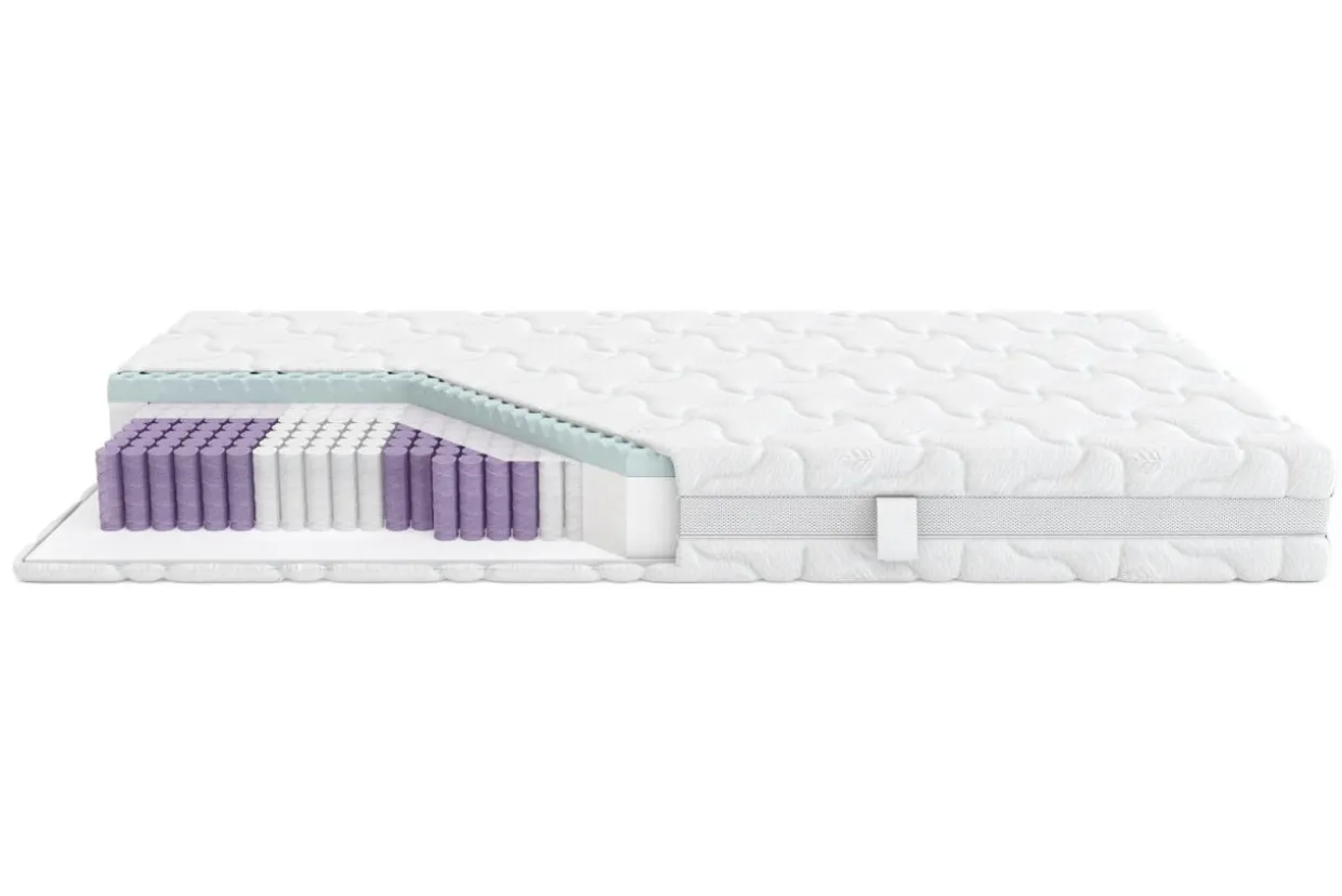 Każdą ze sprężyn umieszczono w osobnej kieszonce, co sprawia, że materac nie faluje i nie ulega łatwo drganiom. Wysoki współczynnik gęstości rozmieszczenia sprężyn w przeliczeniu na metr kwadratowy zapewnia odpowiednią elastyczność punktową i zapewnia trwałość materaca. - PIANKA POLIURETANOWA
