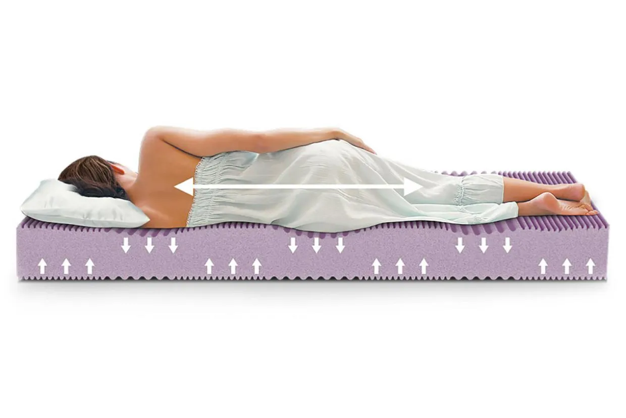 Materac pomaga wyciszyć się przed snem, bo jego profilowana struktura działa jak delikatny masaż. 7 stref twardości zapewnia podparcie każdej części ciała niezależnie od pozycji spania.