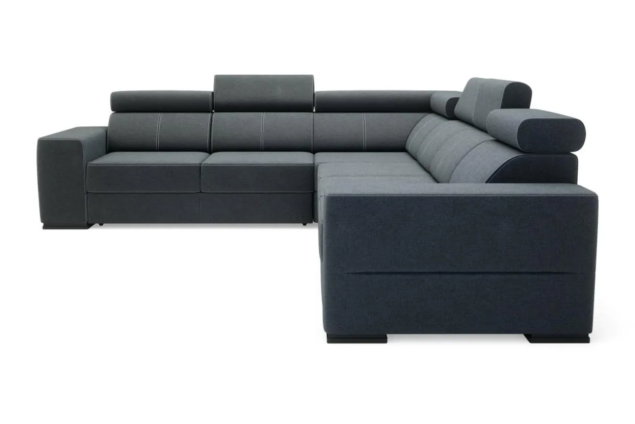 Narożnik APOLLO został wyposażony w funkcję delfin, dzięki której wystarczy podnieść i wysunąć stelaż znajdujący się pod siedziskiem, by uzyskać powierzchnię w pełni przygotowaną do nocnego wypoczynku.