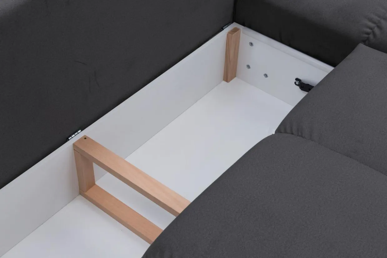 - Pojemnik na pościel znajduje się pod siedziskiem, więc możesz wyciągnąć pościel w trakcie rozkładania łóżka.