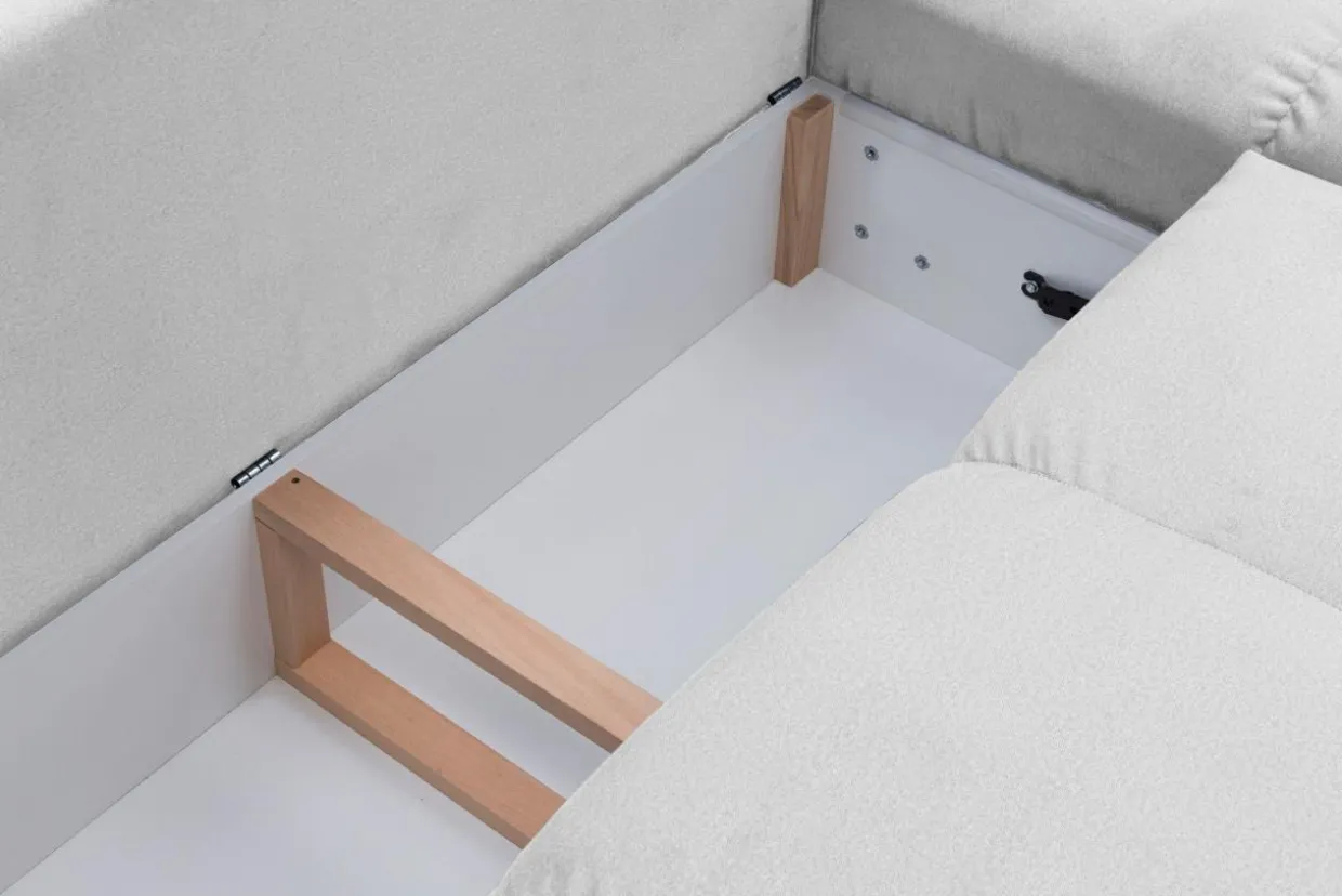 - Pojemnik na pościel znajduje się pod siedziskiem, więc możesz wyciągnąć pościel w trakcie rozkładania łóżka.