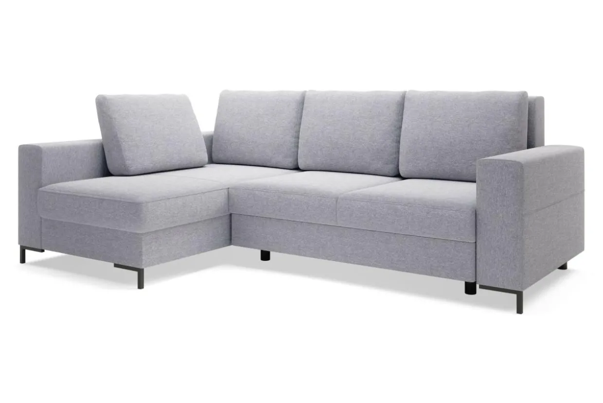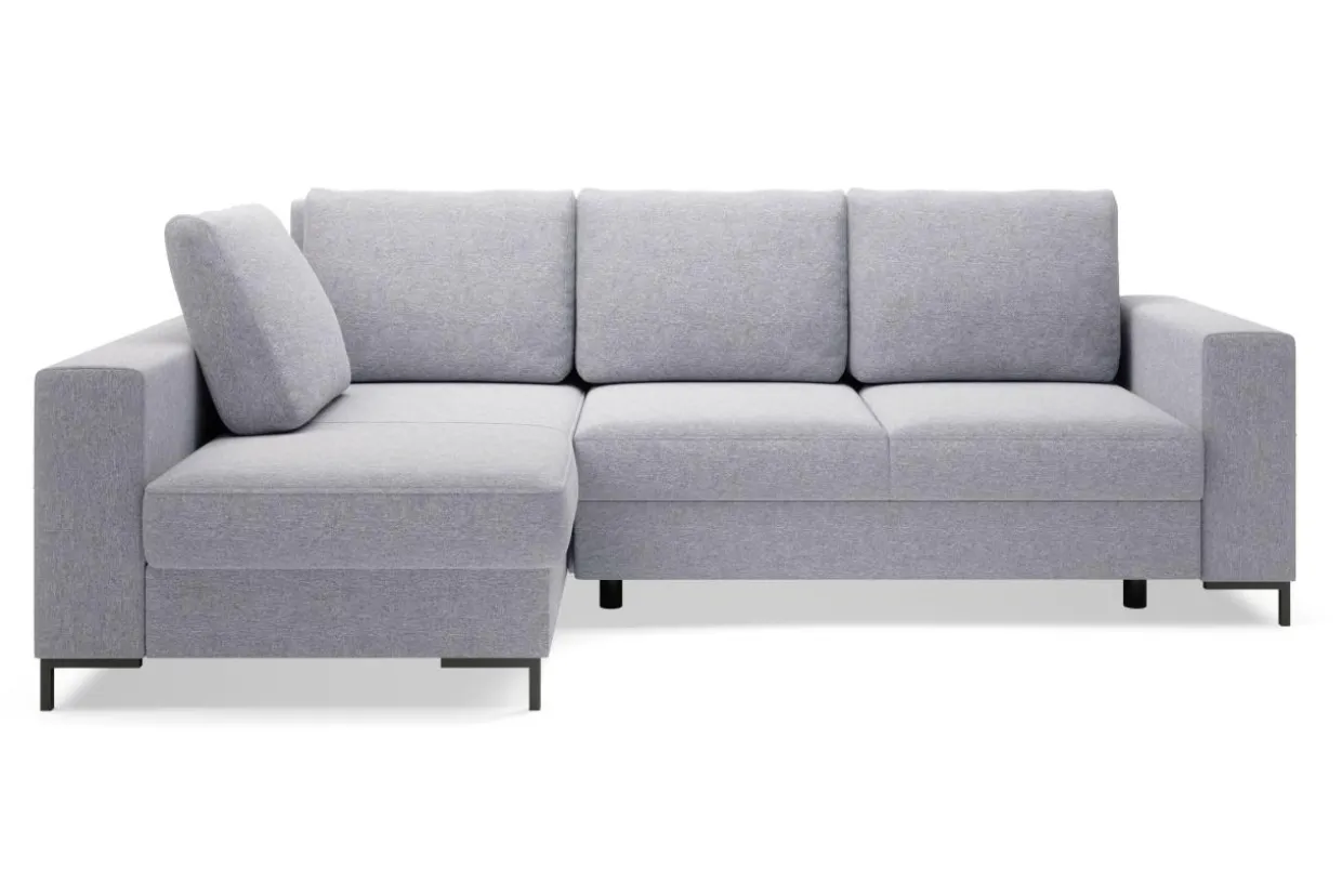 Ciecz skrapla się na jej powierzchni tkaniny i masz więcej czasu na wytarcie rozlanego soku. Narożnik w szarym kolorze możesz wkomponować w nowoczesną przestrzeń. Dzięki metalowym nóżkom narożnik wpasuje się w surowe wnętrza w stylu industrialnym.