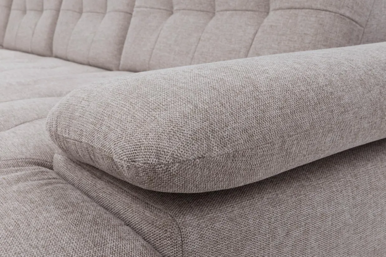 Materiałem wykończeniowym jest tkanina BREGO. Pod kątem estetycznym całości obrazu dopełnia pikowanie oraz nóżki narożnika w kolorze chrom.