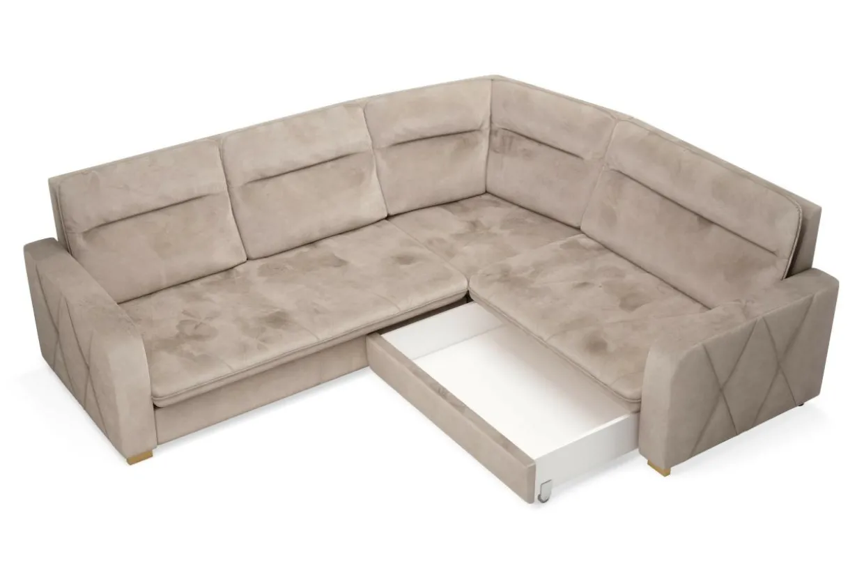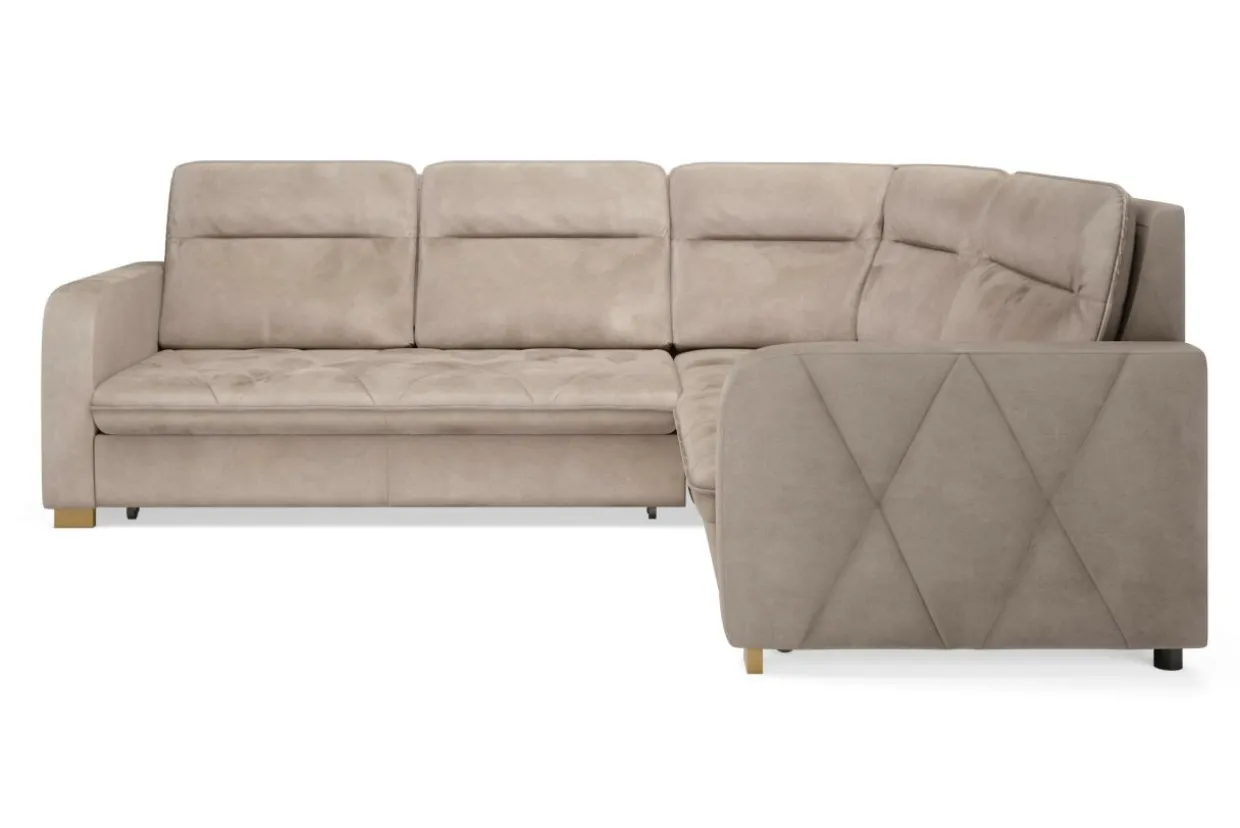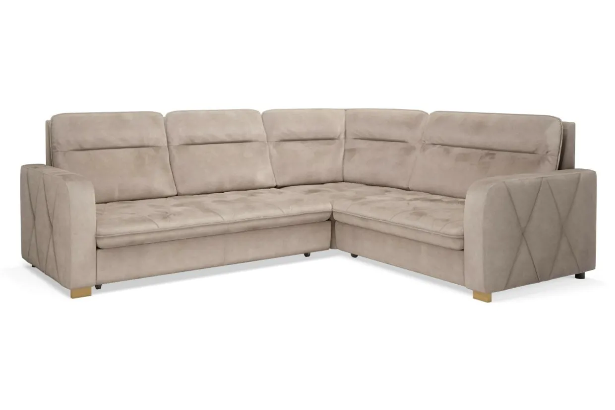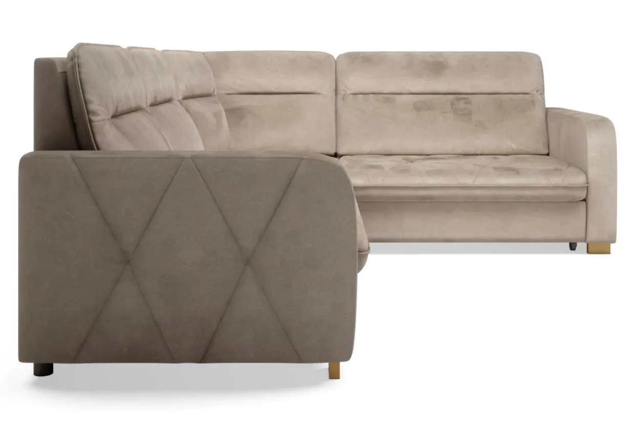 Narożnik SOLAR pokryto welurową tkaniną w beżowym – delikatnym kolorze. Bardzo przyjemnie jest dotykać jej miękkiej powierzchni.