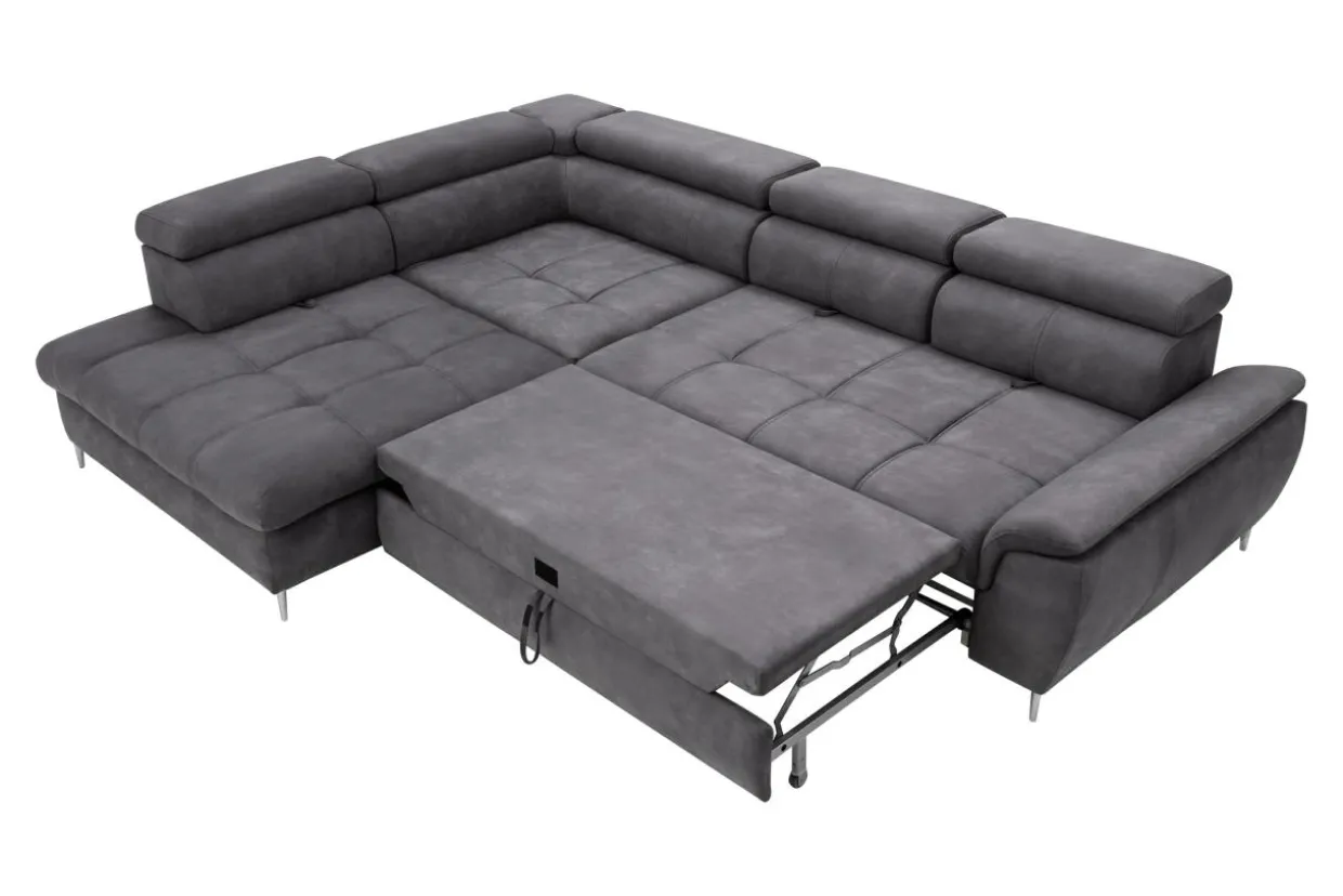 Mechanizm rozkładania typu „delfin” nie wymaga odsuwania narożnika od ściany. Za jego pomocą uzyskasz powierzchnię spania o wymiarach 140×225 cm.