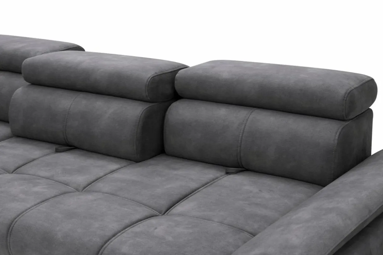 Możliwość regulacji zarówno samych zagłówków, jak i trzech elementów oparcia gwarantuje optymalne dopasowanie narożnika do potrzeb użytkowników i zapewnia maksymalny komfort podczas wypoczynku.
