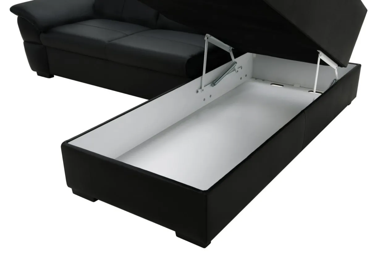 Stelaż pod siedziskiem wysuwamy i podnosimy za pomocą uchwytu. Mebel nie wymaga odsuwania od ściany. Idealny do okazjonalnego spania.